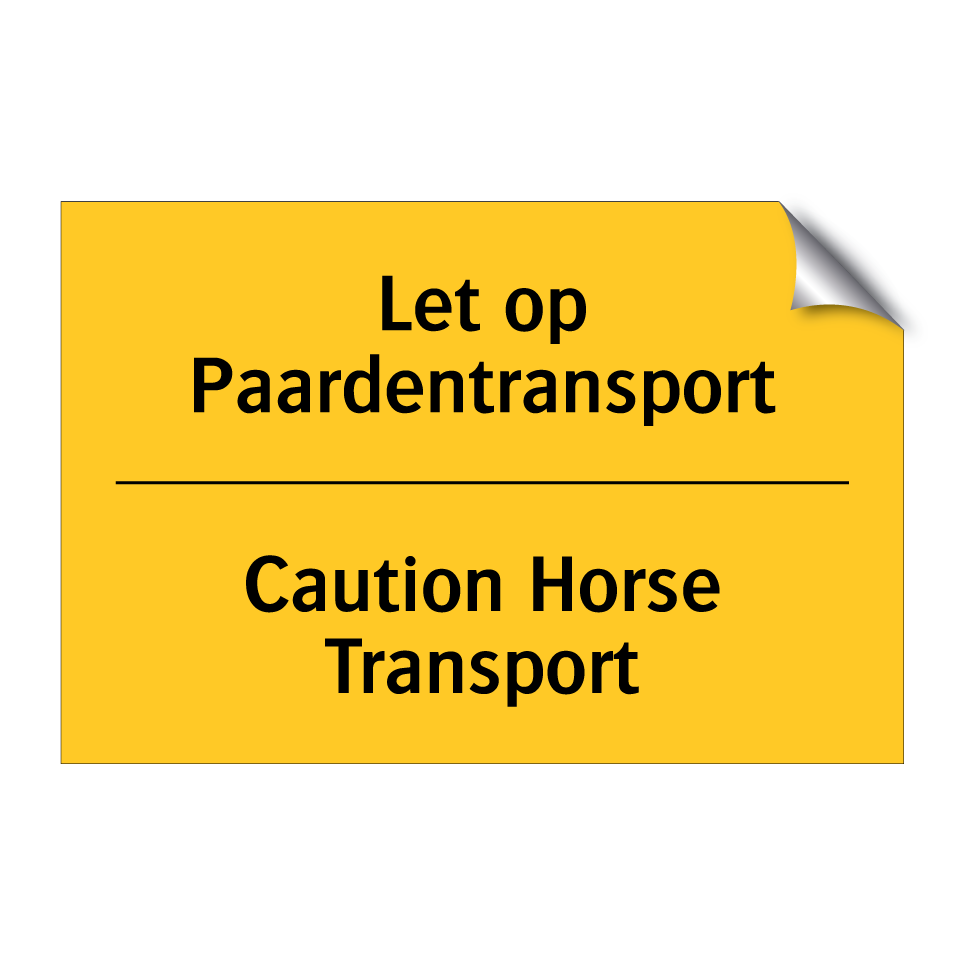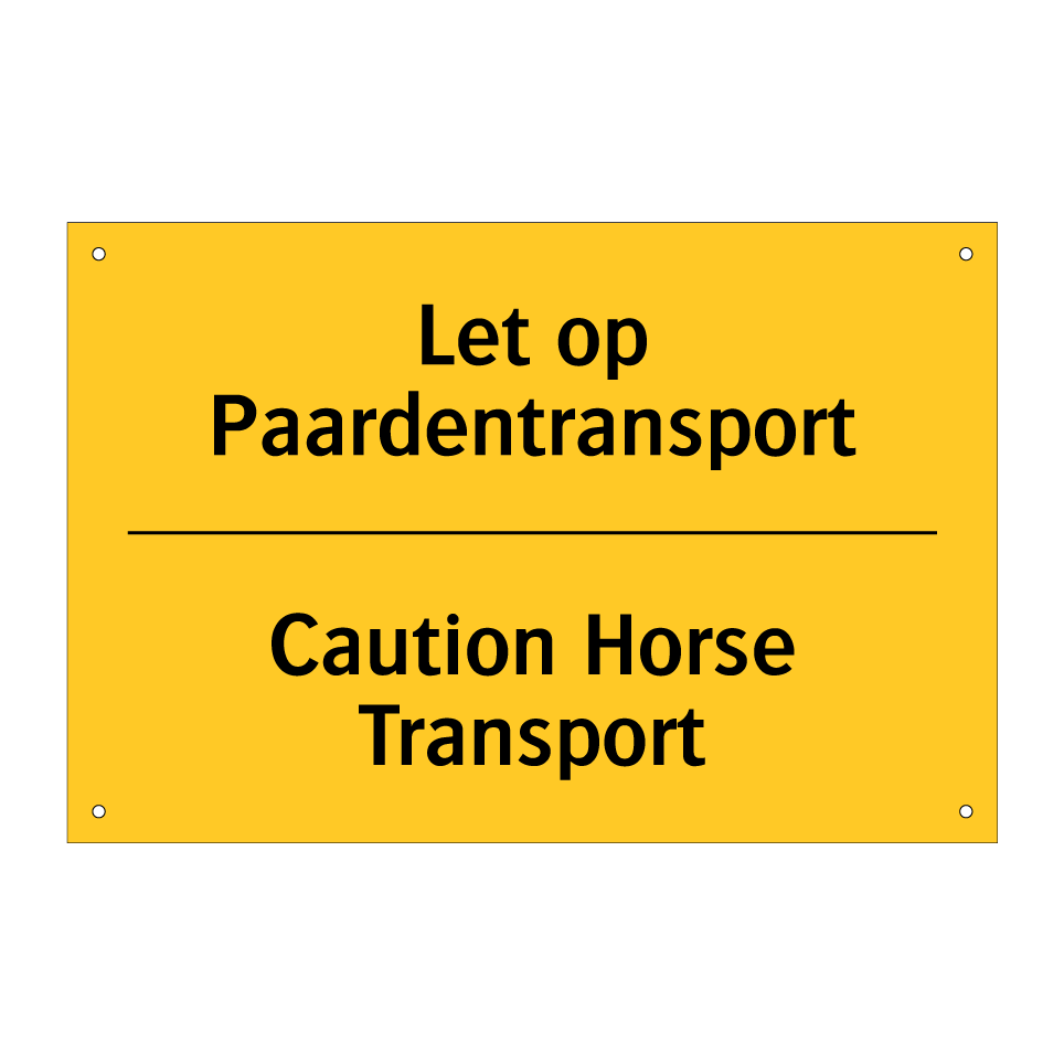 Waarschuwingsbord met de tekst Let op Paardentransport / Caution Horse Transport
