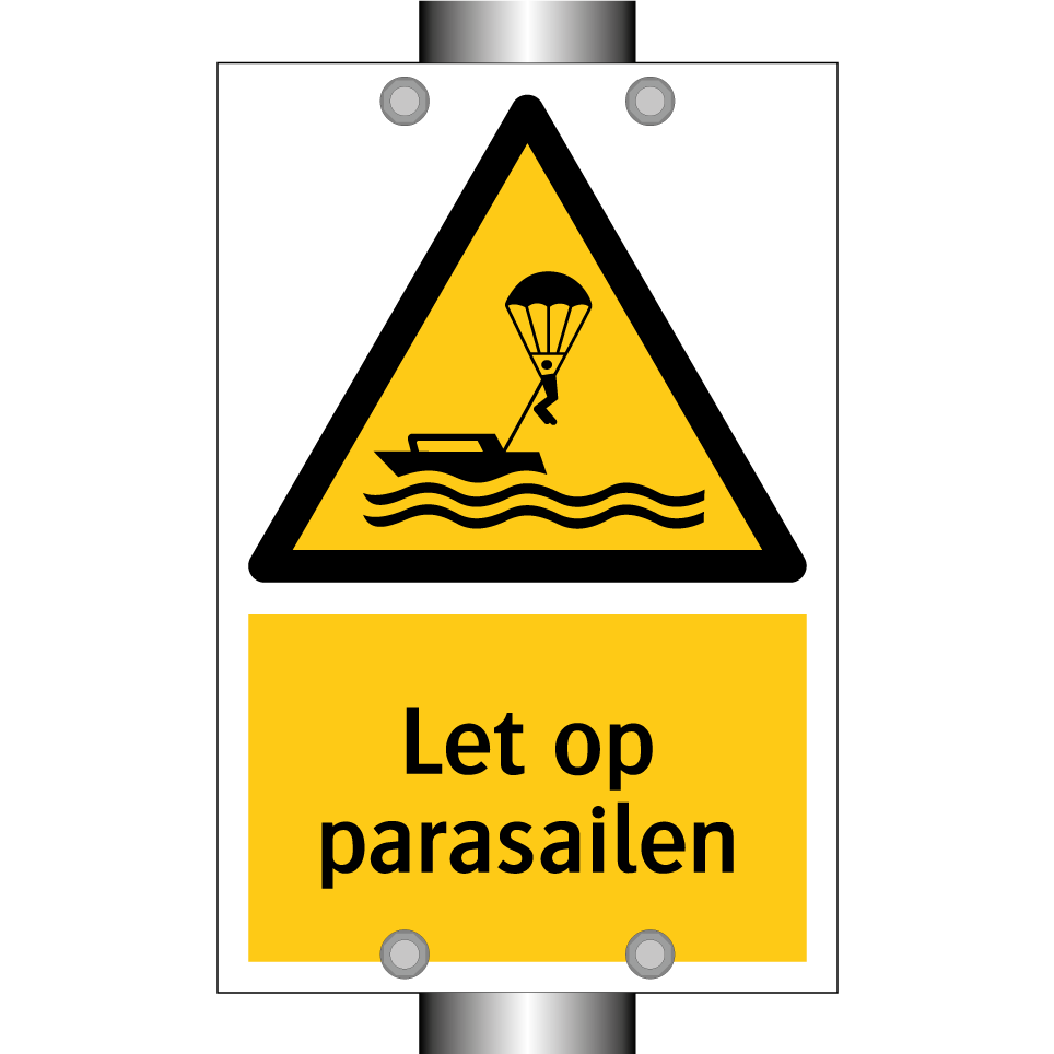 Waarschuwingsbord met de tekst Let op parasailen