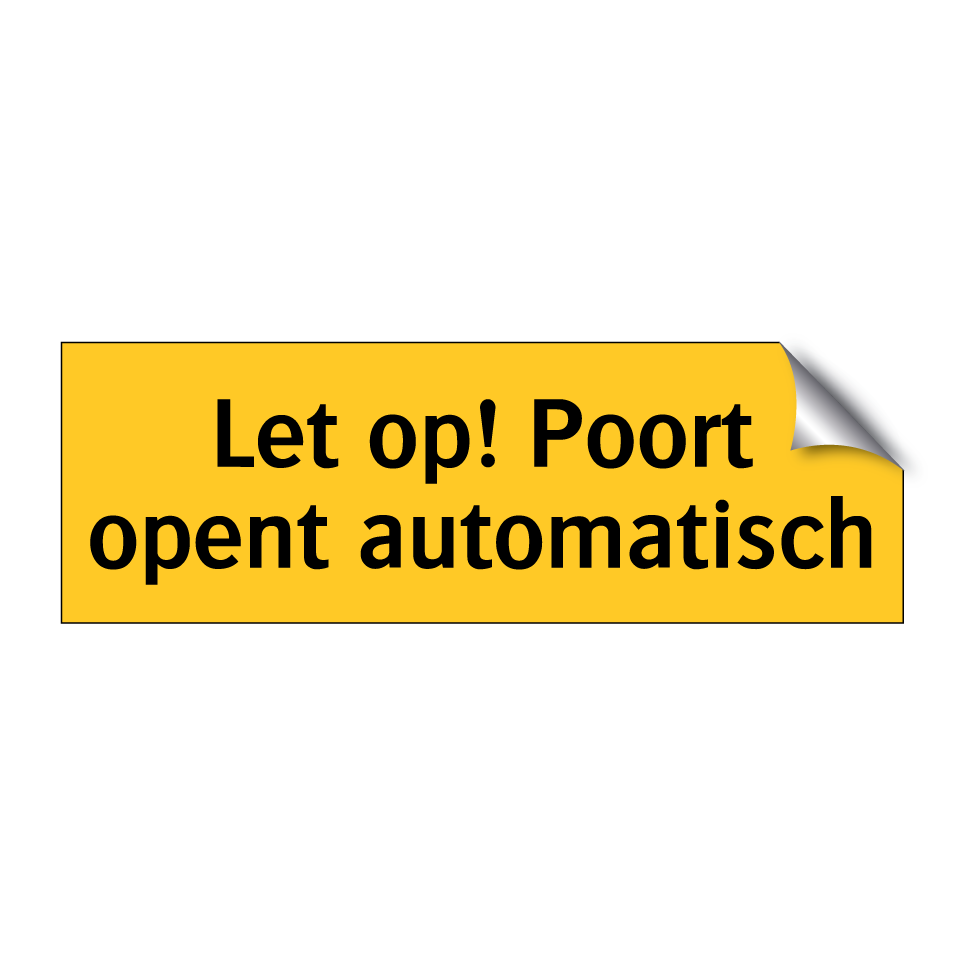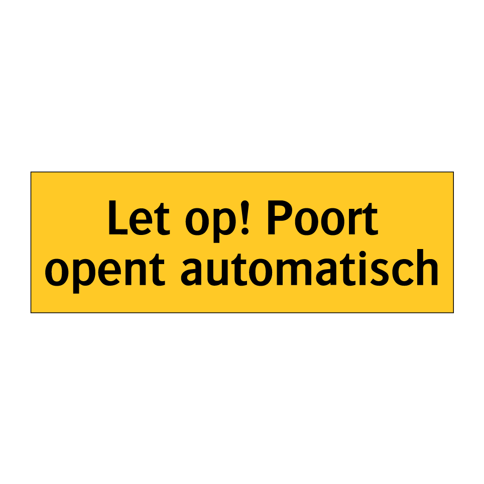 Waarschuwingsbord met de tekst Let op! Poort opent automatisch