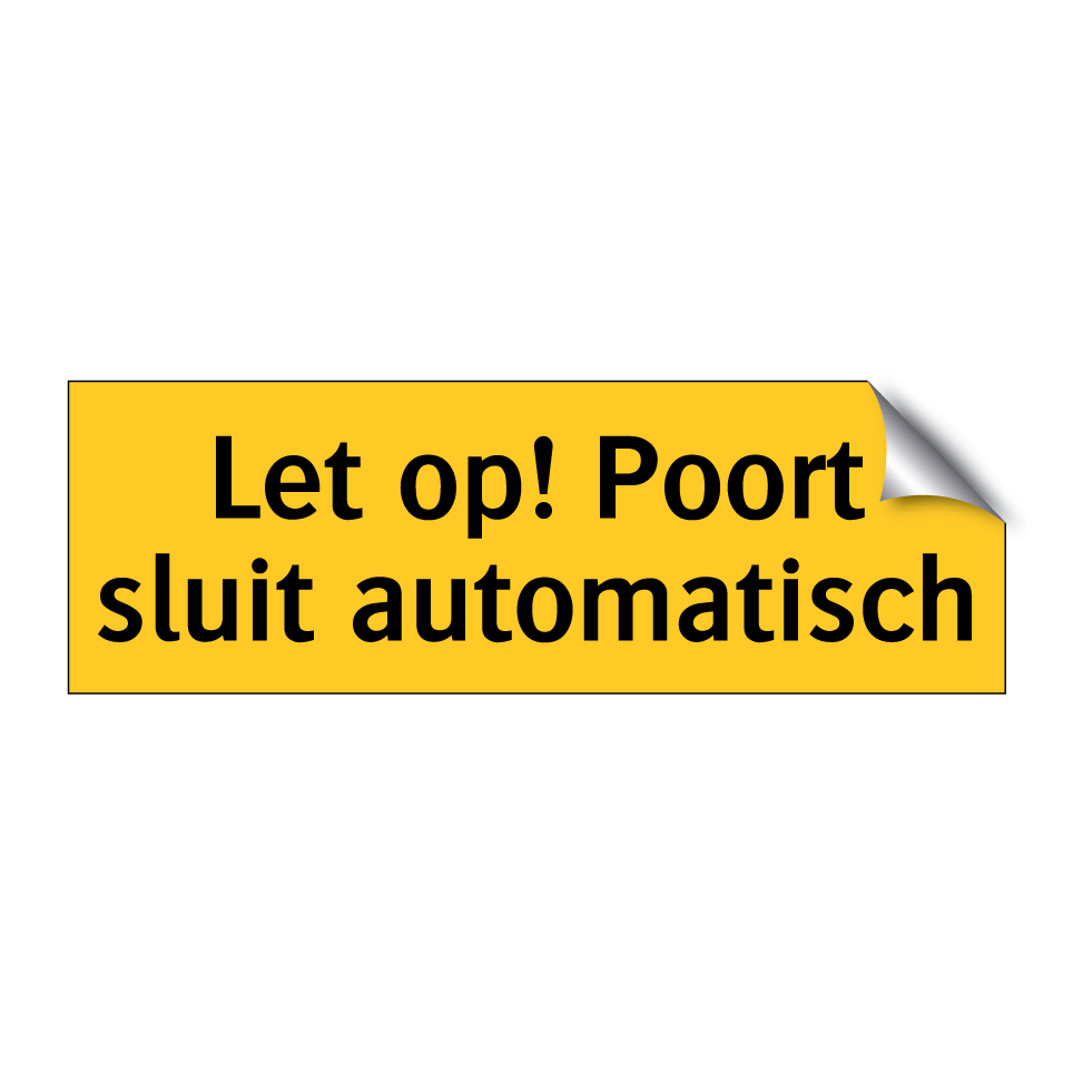 Waarschuwingsbord met de tekst Let op! Poort sluit automatisch
