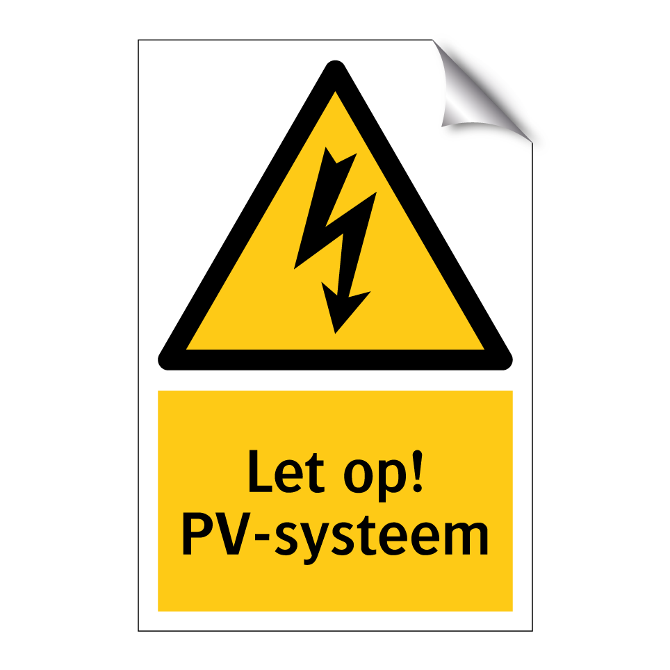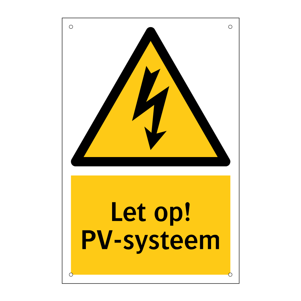 Waarschuwingsbord met de tekst Let op! PV-systeem