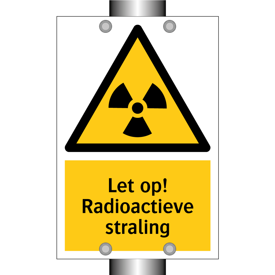 Waarschuwingsbord met de tekst Let op! Radioactieve straling