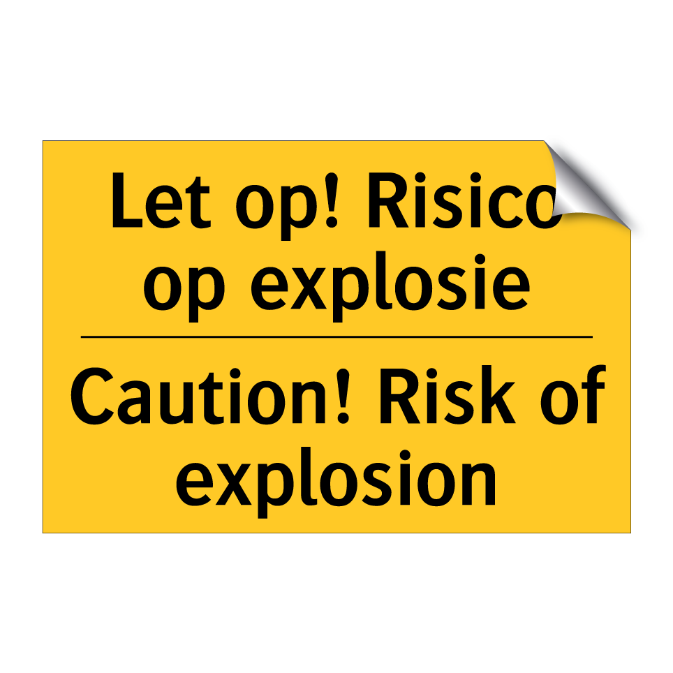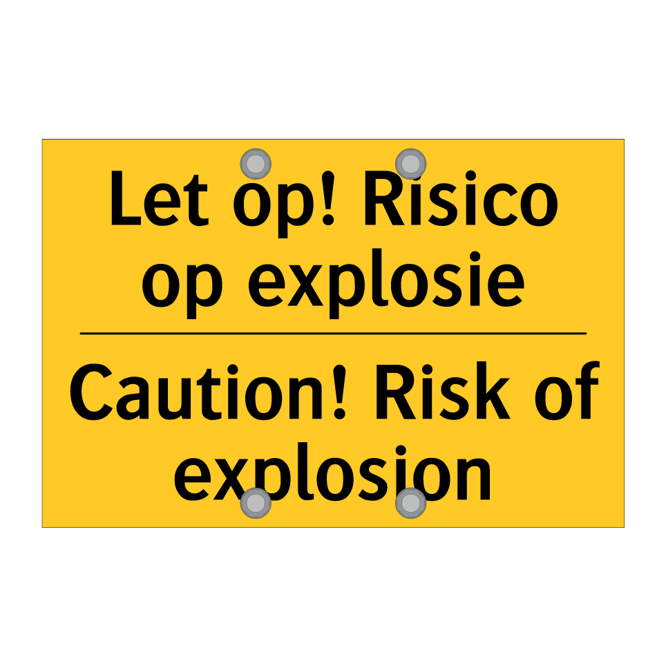 Waarschuwingsbord met de tekst Let op! Risico op explosie / Caution! Risk of explosion