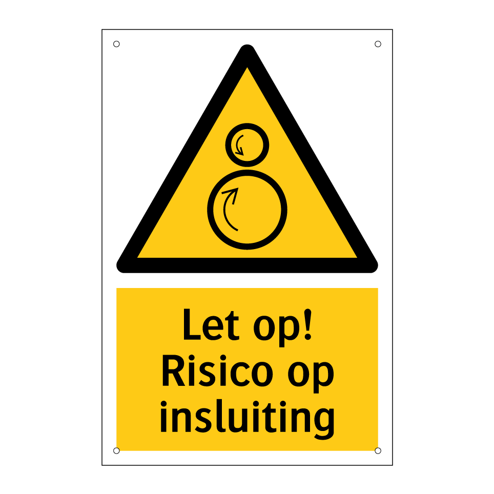 Waarschuwingsbord met de tekst Let op! Risico op insluiting