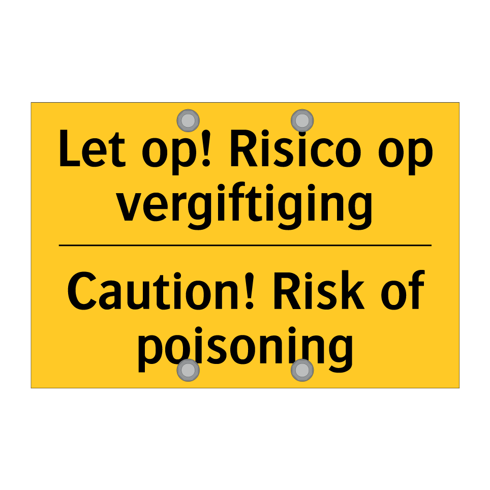 Waarschuwingsbord met de tekst Let op! Risico op vergiftiging / Caution! Risk of poisoning