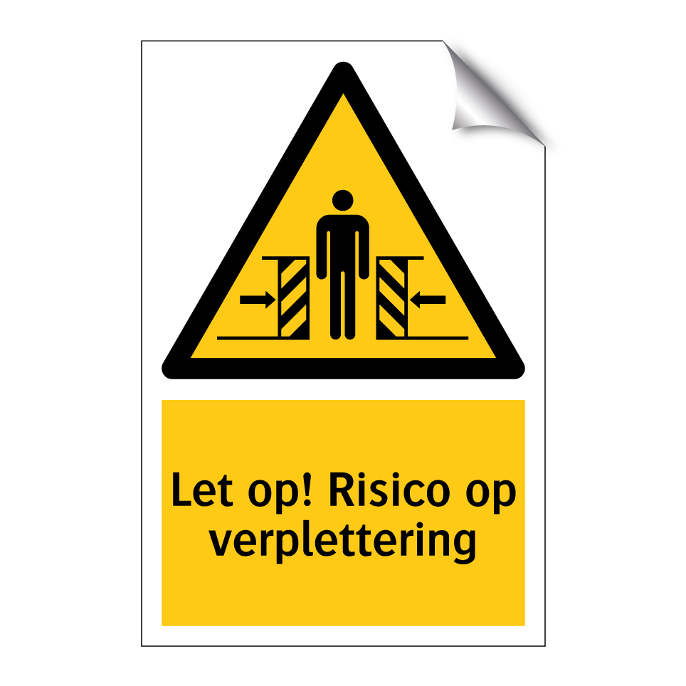 Waarschuwingsbord met de tekst Let op! Risico op verplettering