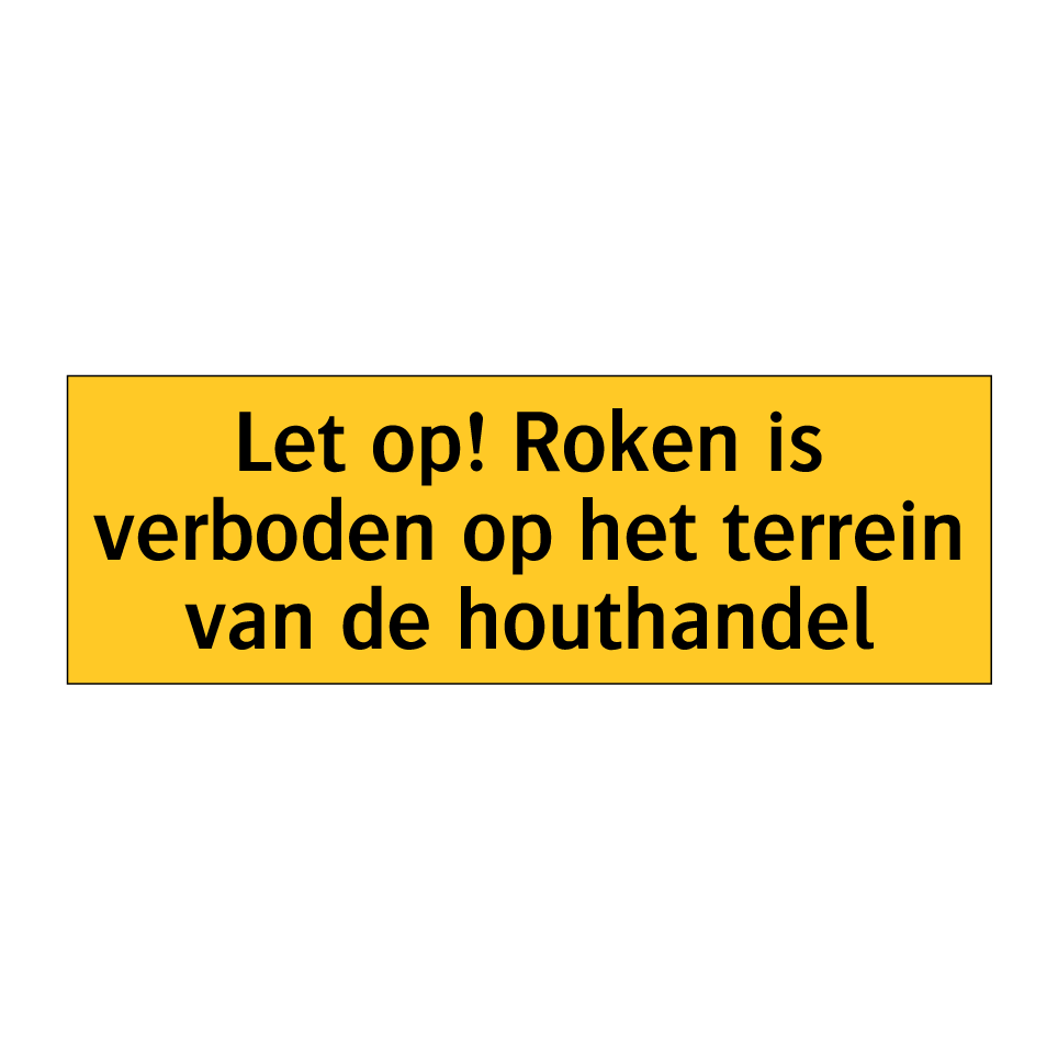 Waarschuwingsbord met de tekst Let op! Roken is verboden op het terrein van de houthandel