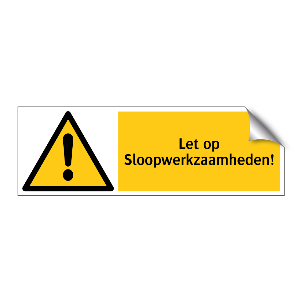 Waarschuwingsbord met de tekst Let op Sloopwerkzaamheden!