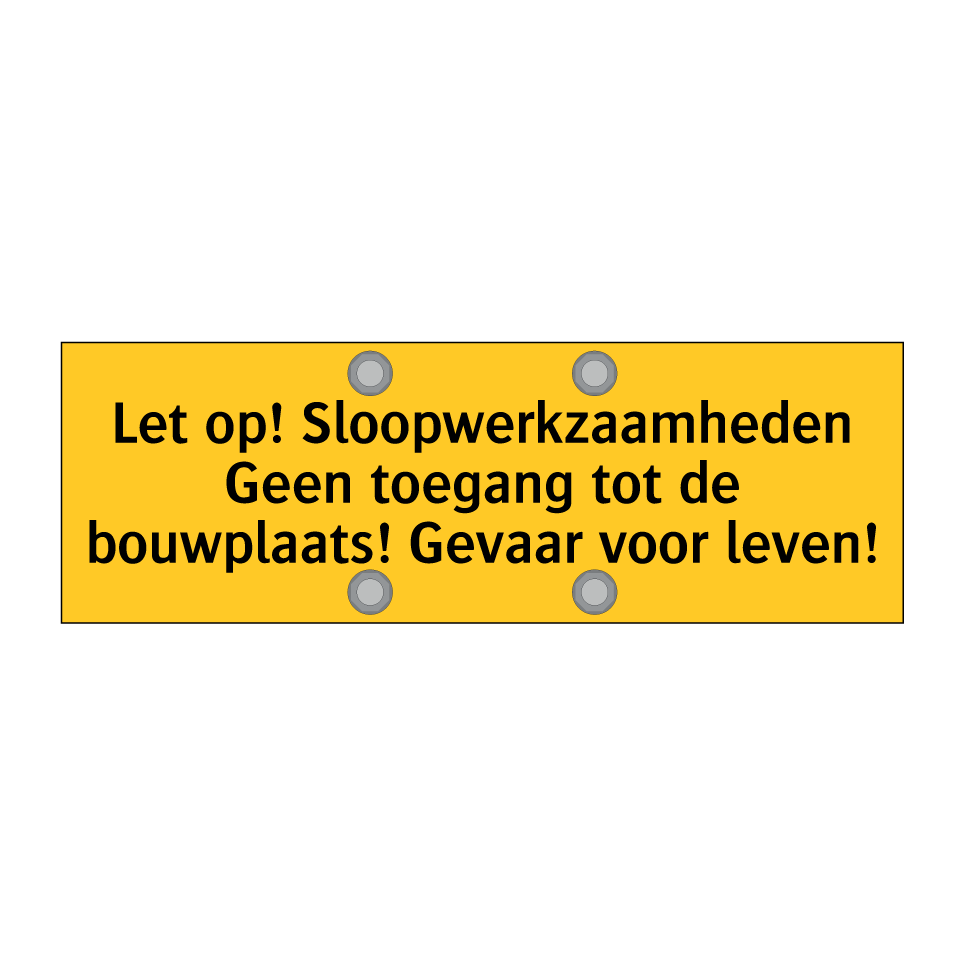 Waarschuwingsbord met de tekst Let op! Sloopwerkzaamheden Geen toegang tot de bouwplaats! Gevaar voor leven!
