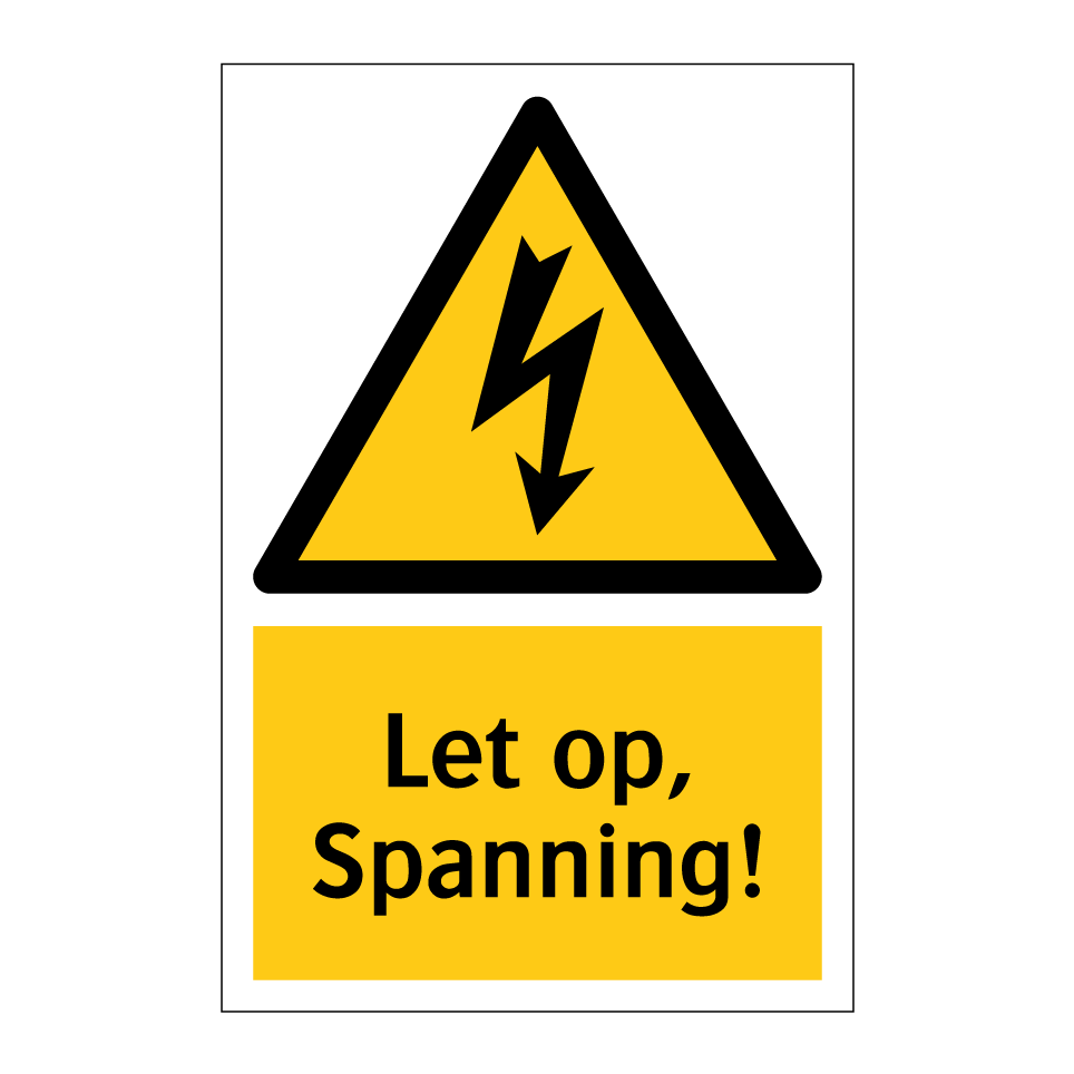Waarschuwingsbord met de tekst Let op, Spanning!