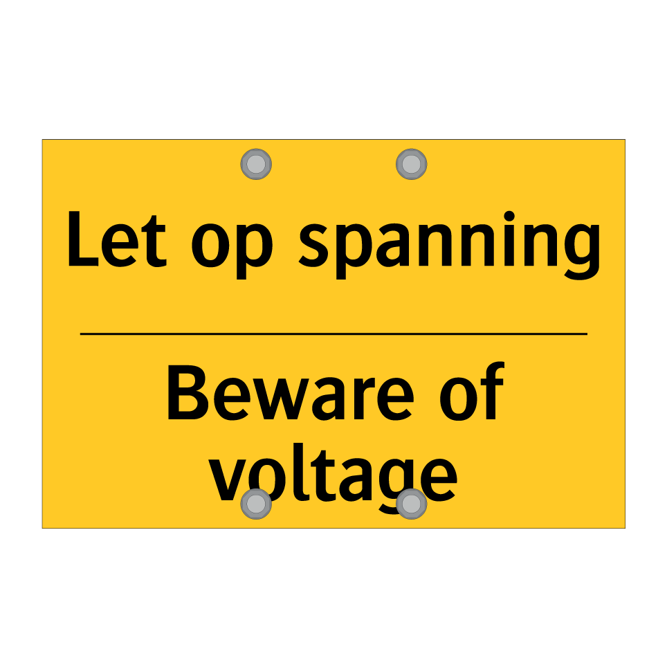 Waarschuwingsbord met de tekst Let op spanning / Beware of voltage