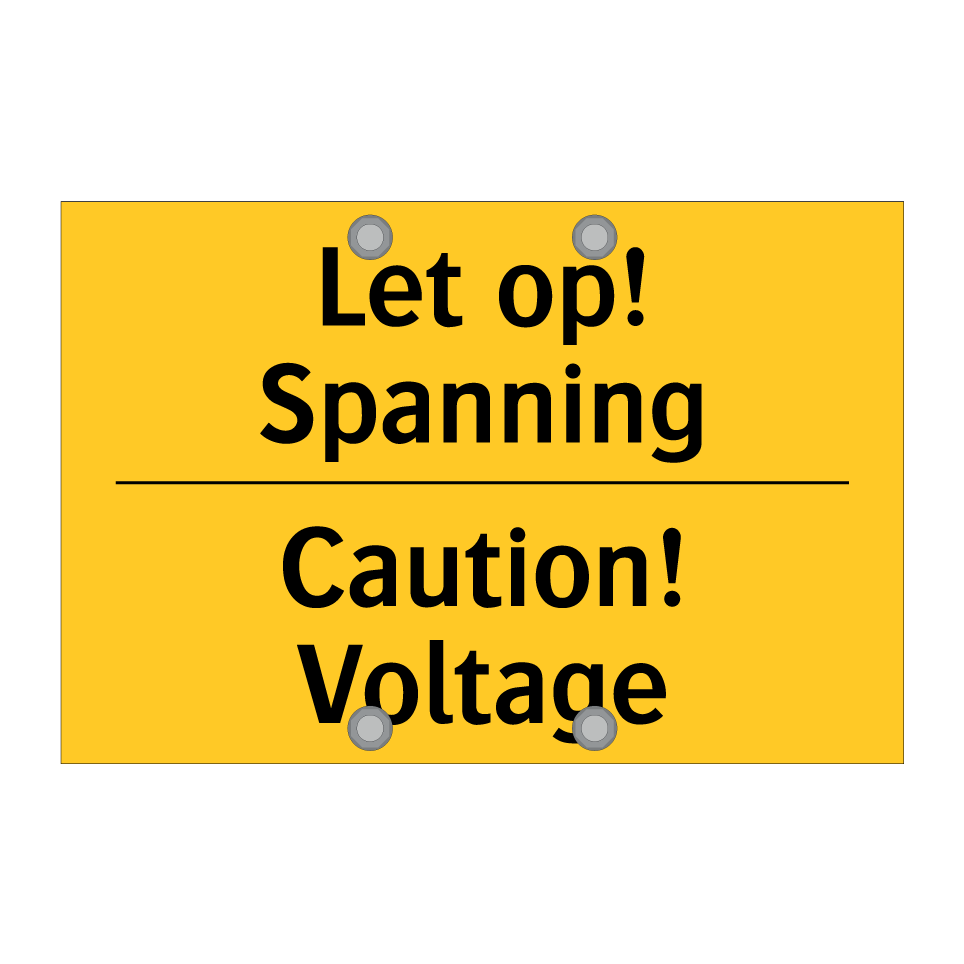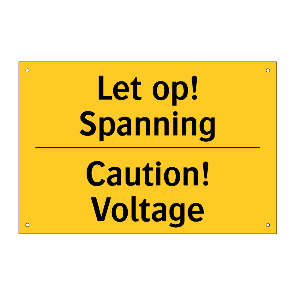 Waarschuwingsbord met de tekst Let op! Spanning / Caution! Voltage