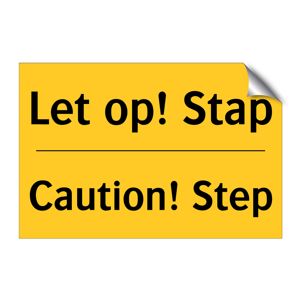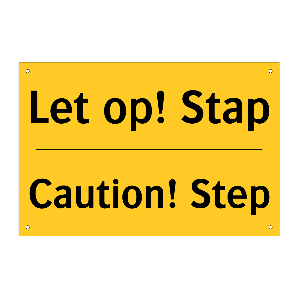 Waarschuwingsbord met de tekst Let op! Stap / Caution! Step