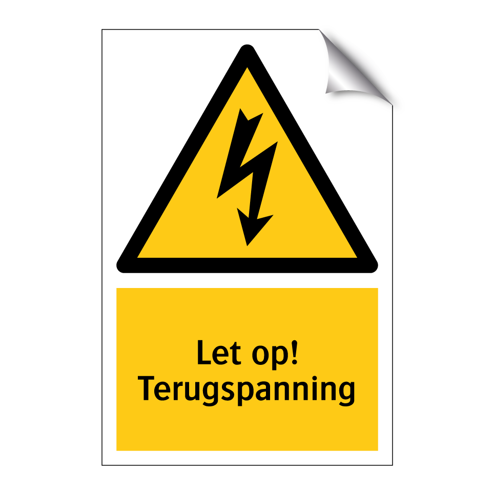 Waarschuwingsbord met de tekst Let op! Terugspanning