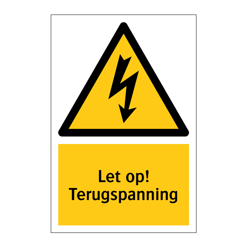 Deze waarschuwingsbord is essentieel voor het waarborgen van de veiligheid in omgevingen waar elektrische terugspanning een risico vormt. Plaats deze bord op zichtbare locaties zoals technische ruimtes, elektriciteitskasten, en industriële installaties om personeel en bezoekers te waarschuwen voor potentieel gevaar. Door deze bord strategisch te positioneren, kunnen ongelukken en letsel worden voorkomen. Ideaal voor gebruik in fabrieken, werkplaatsen, en andere plekken waar elektrische apparatuur wordt gebruikt. Deze waarschuwingsbord helpt bij het handhaven van een veilige werkomgeving en voldoet aan de veiligheidsvoorschriften.