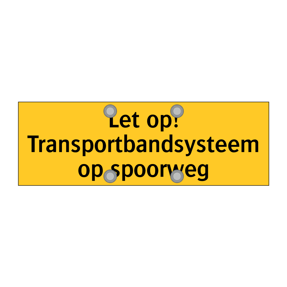 Waarschuwingsbord met de tekst Let op! Transportbandsysteem op spoorweg