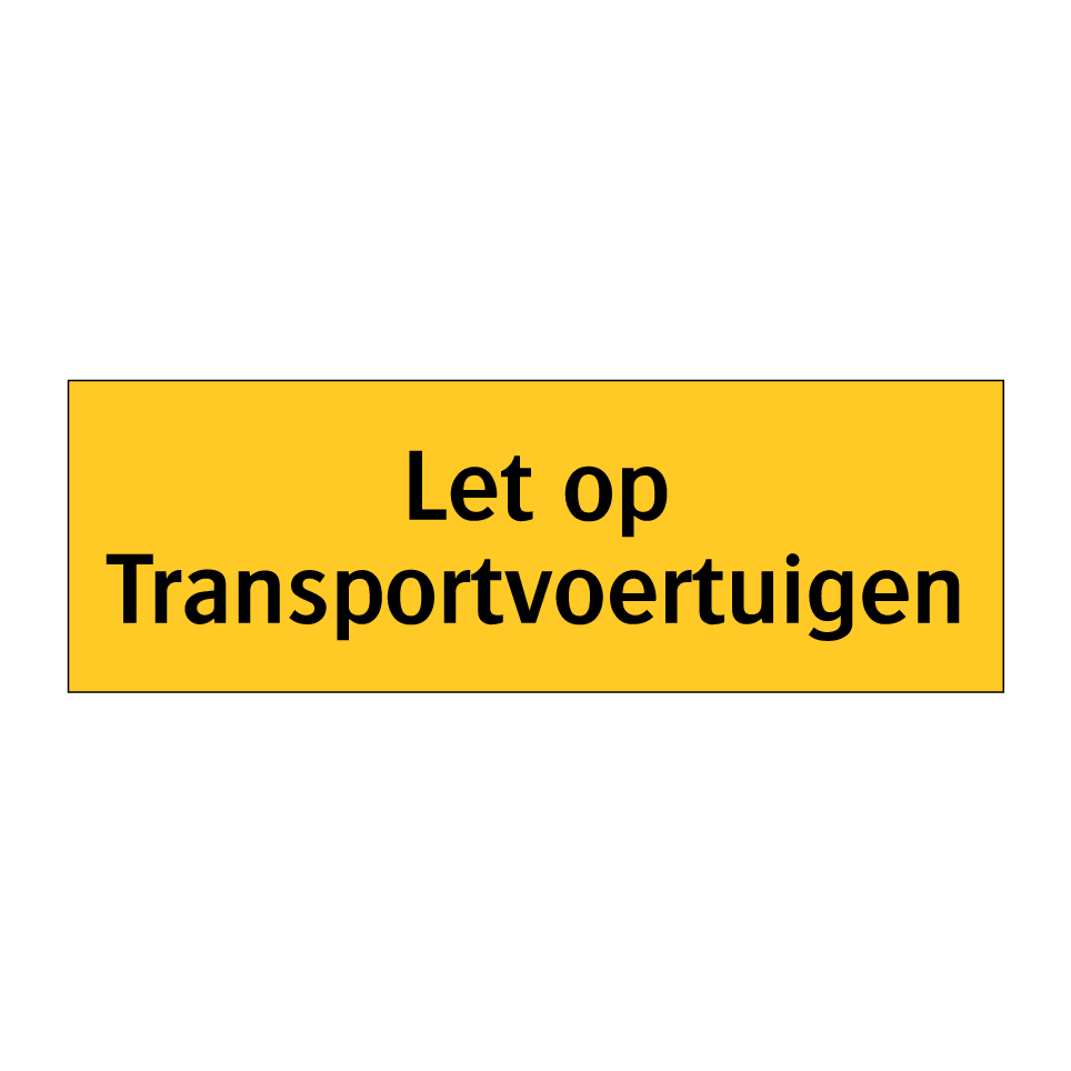 Waarschuwingsbord met de tekst Let op Transportvoertuigen