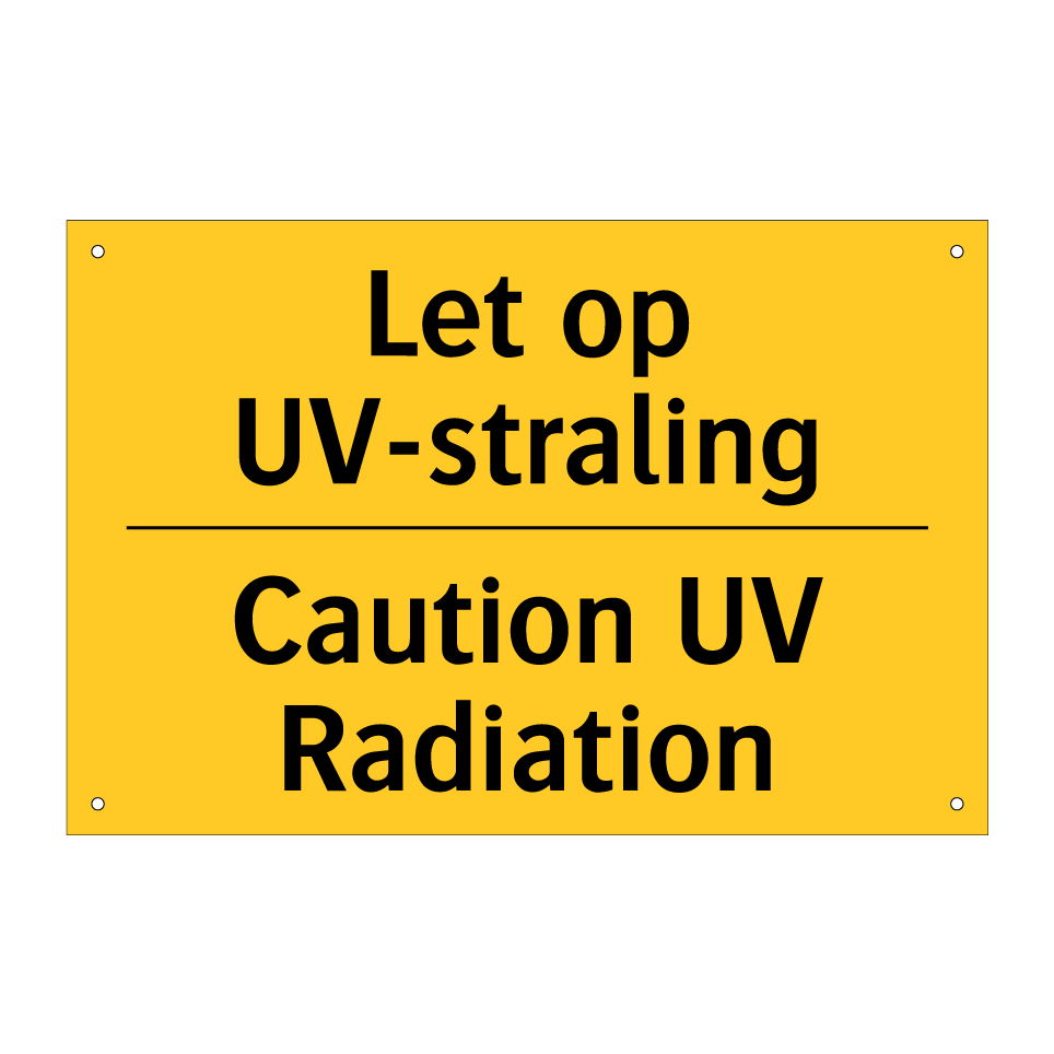 Waarschuwingsbord met de tekst Let op UV-straling / Caution UV Radiation