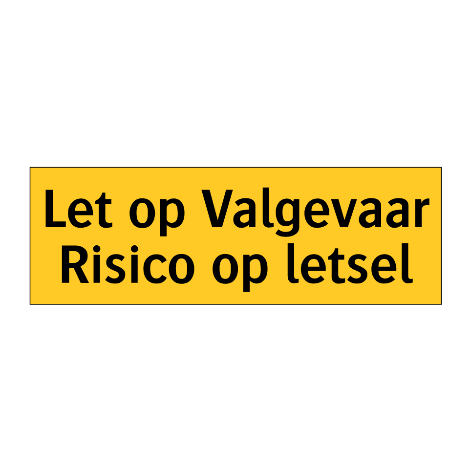Waarschuwingsbord met de tekst Let op Valgevaar Risico op letsel
