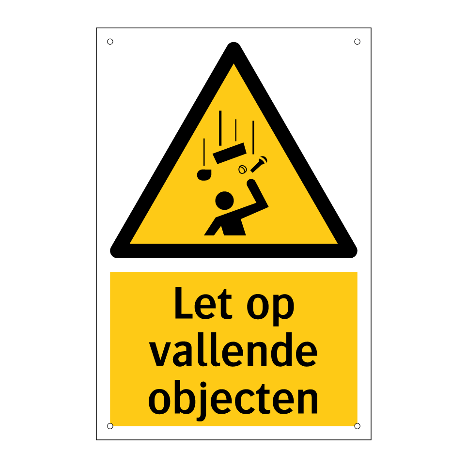 Waarschuwingsbord met de tekst Let op vallende objecten