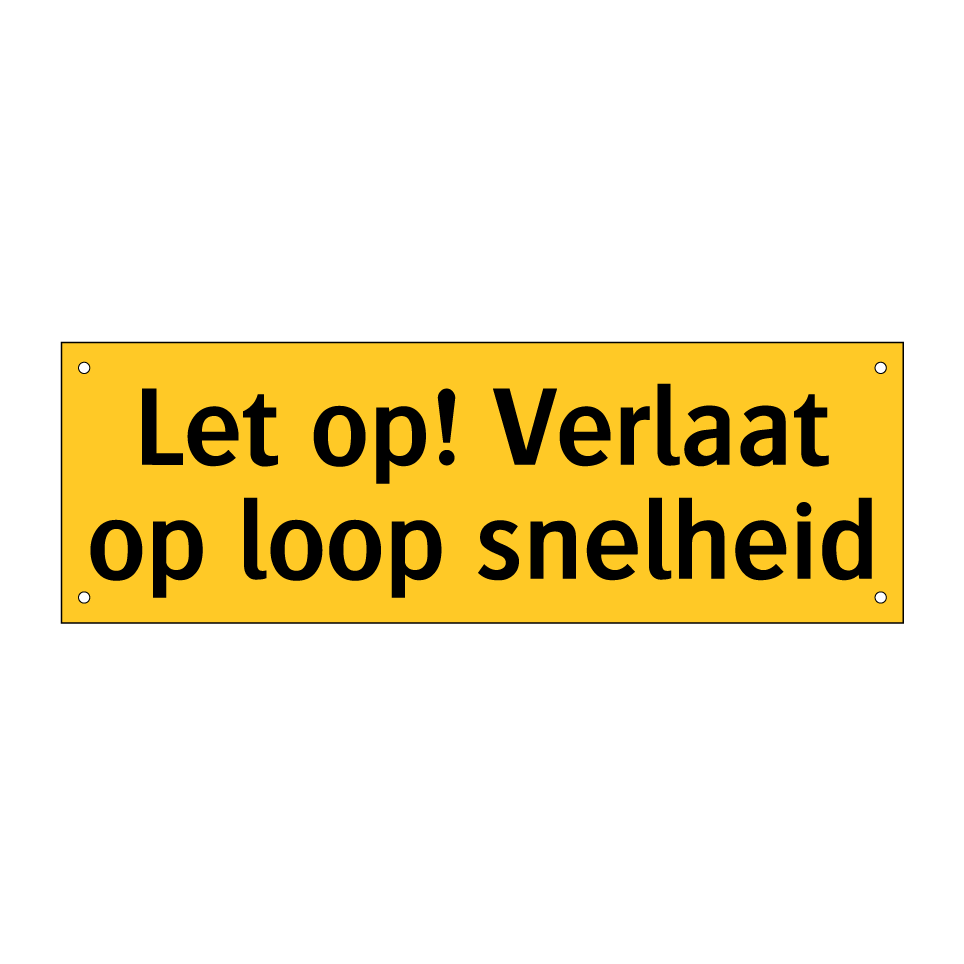 Waarschuwingsbord met de tekst Let op! Verlaat op loop snelheid