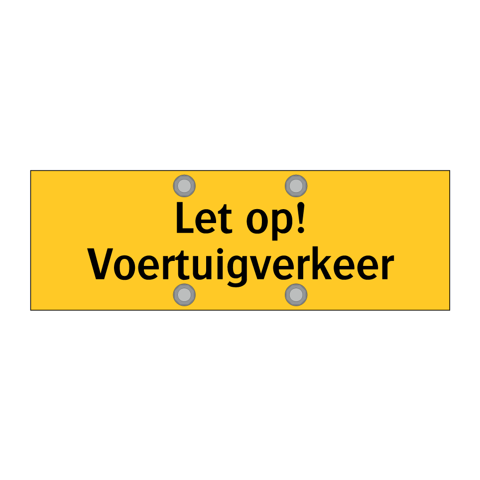 Waarschuwingsbord met de tekst Let op! Voertuigverkeer
