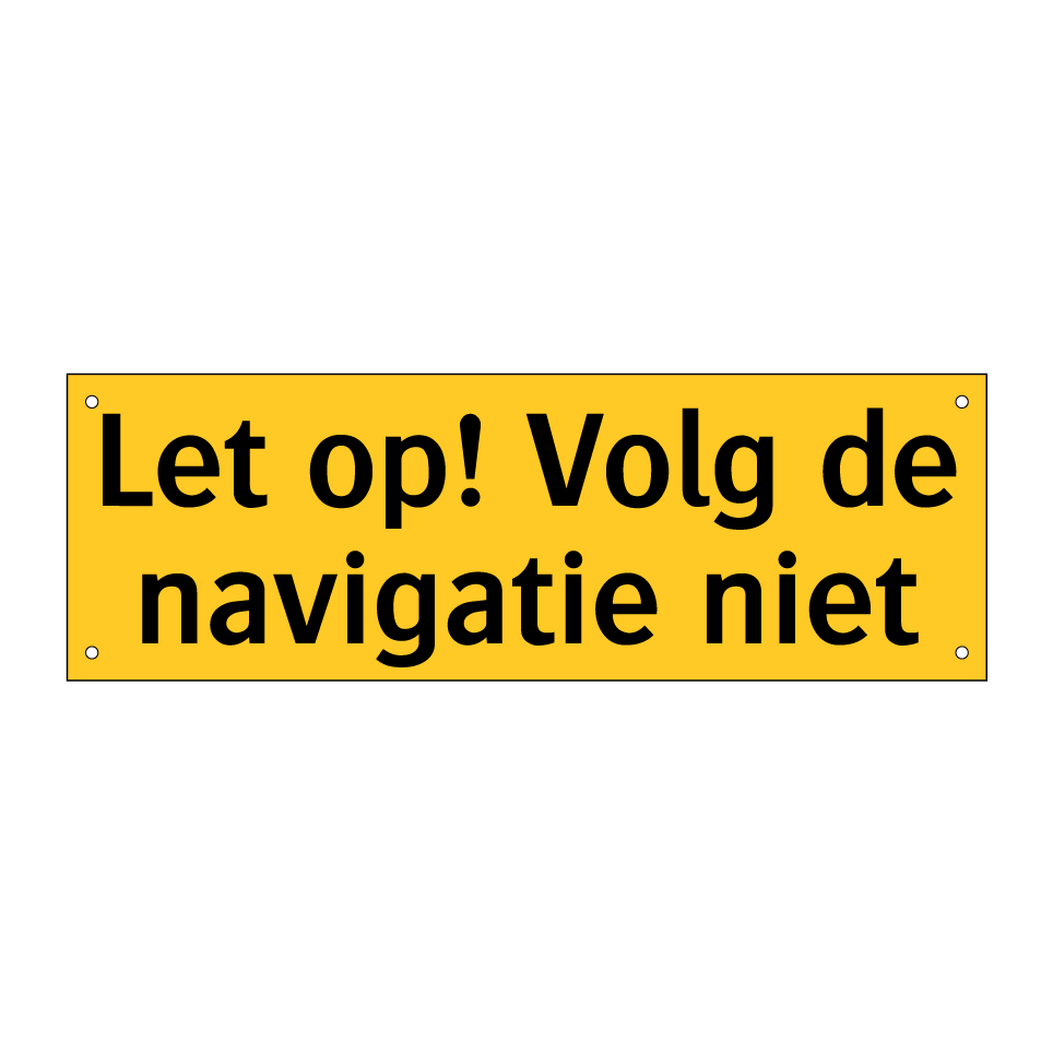 Waarschuwingsbord met de tekst Let op! Volg de navigatie niet