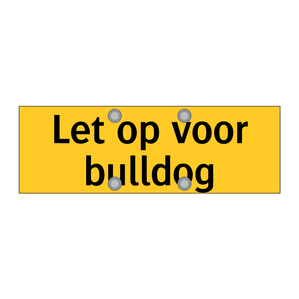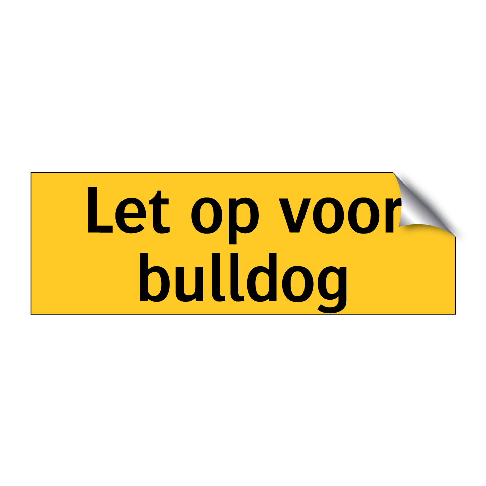 Waarschuwingsbord met de tekst Let op voor bulldog