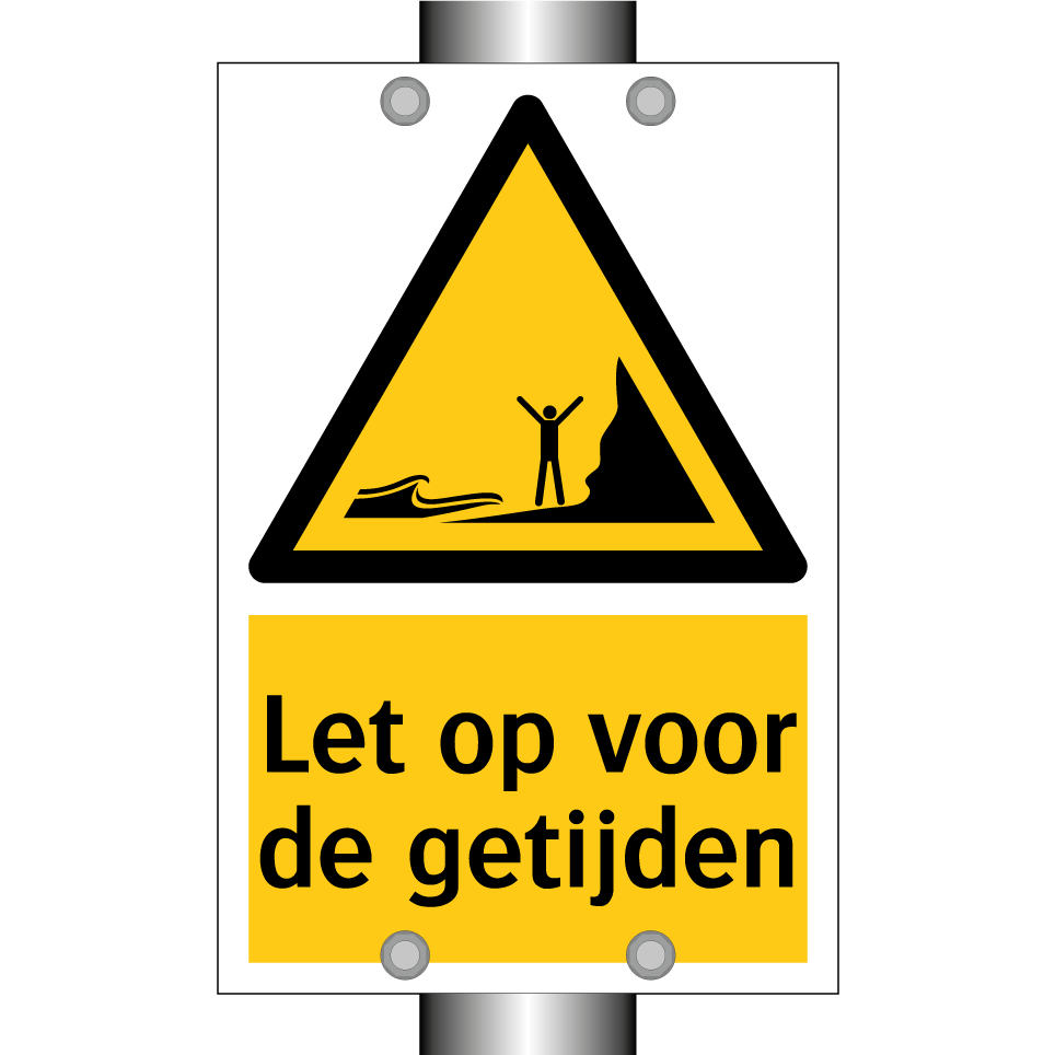 Waarschuwingsbord met de tekst Let op voor de getijden