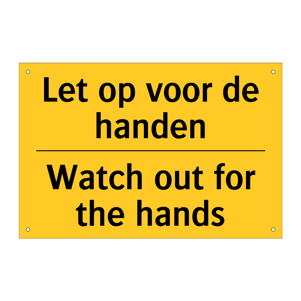 Waarschuwingsbord met de tekst Let op voor de handen / Watch out for the hands