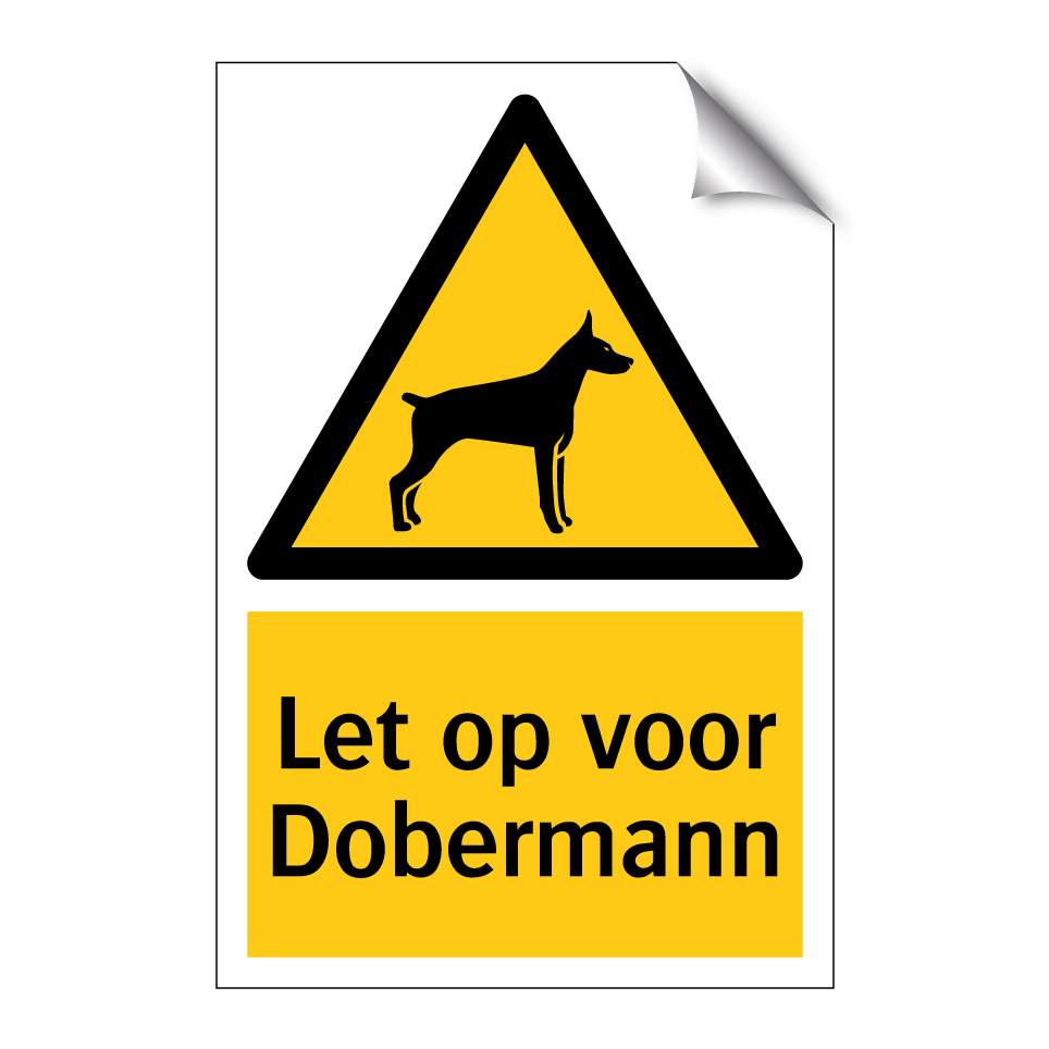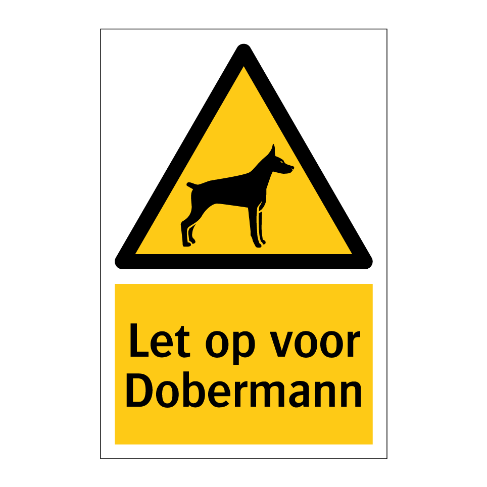 Waarschuwingsbord met de tekst Let op voor Dobermann