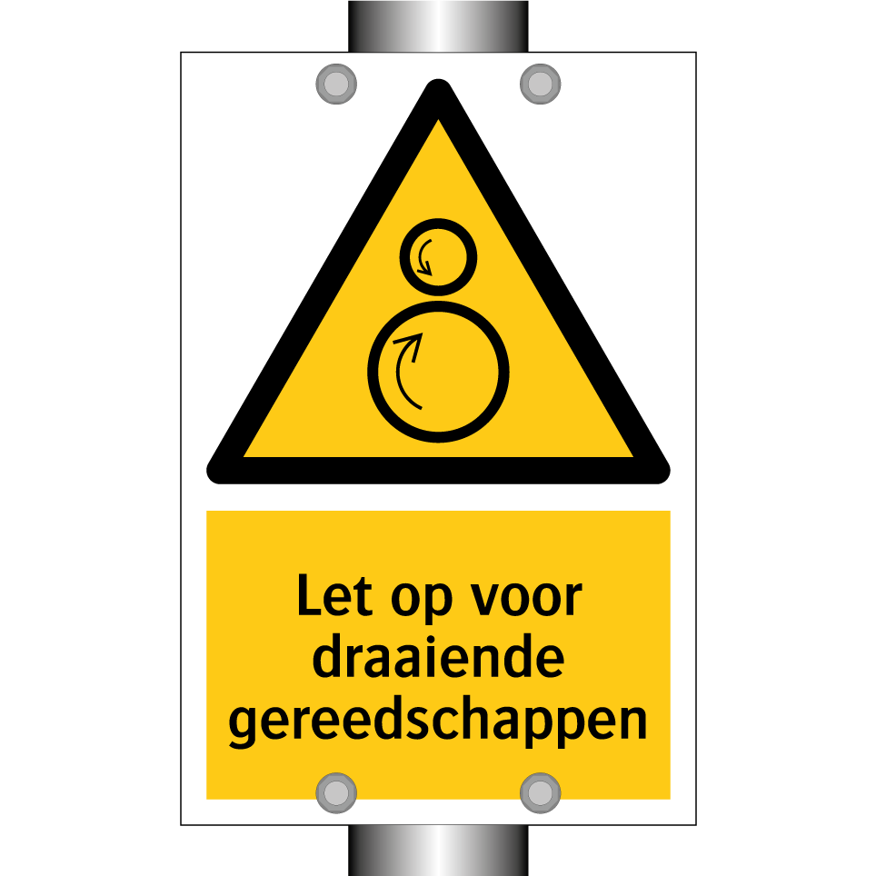 Waarschuwingsbord met de tekst Let op voor draaiende gereedschappen