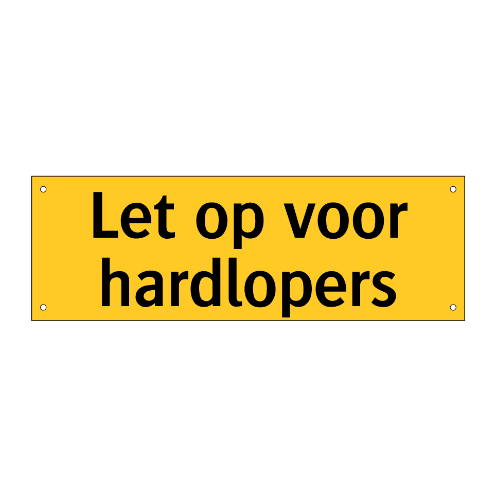 Waarschuwingsbord met de tekst Let op voor hardlopers