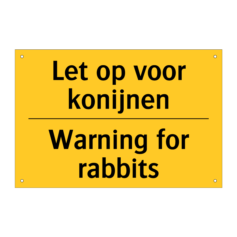 Waarschuwingsbord met de tekst Let op voor konijnen / Warning for rabbits