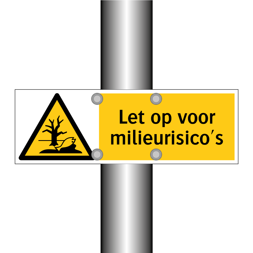 Waarschuwingsbord met de tekst Let op voor milieurisico's