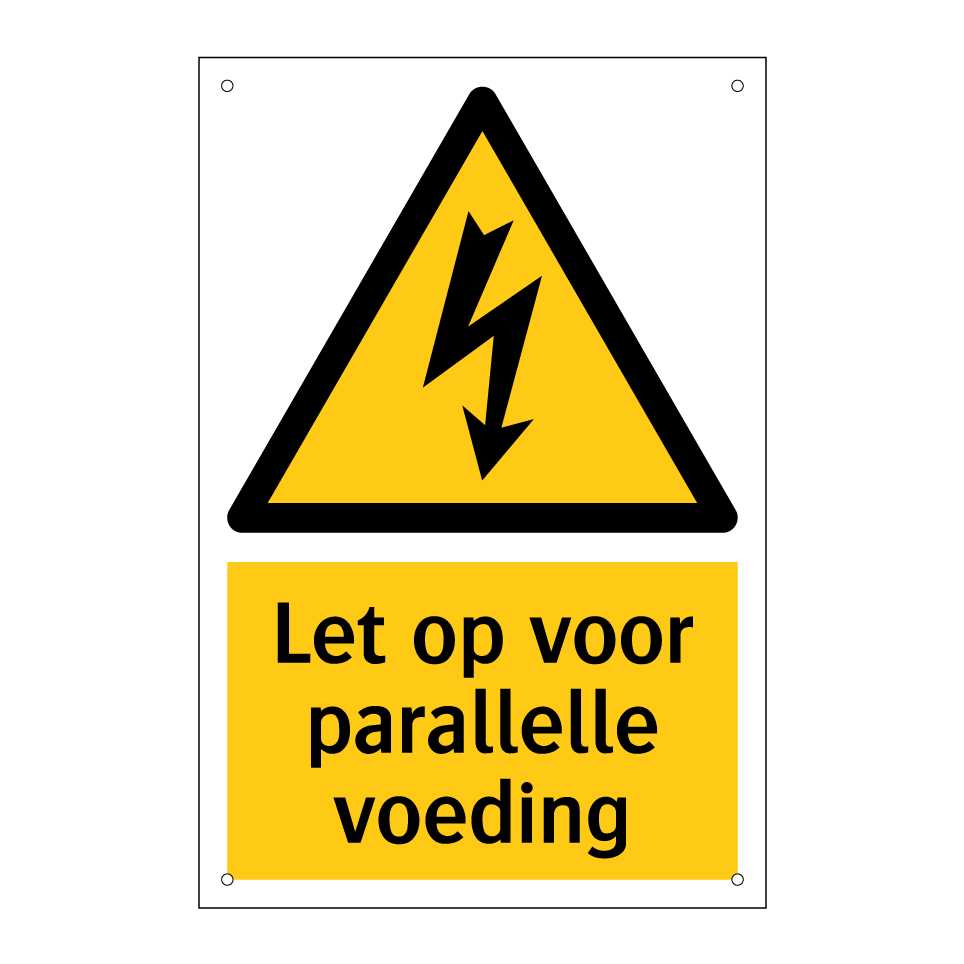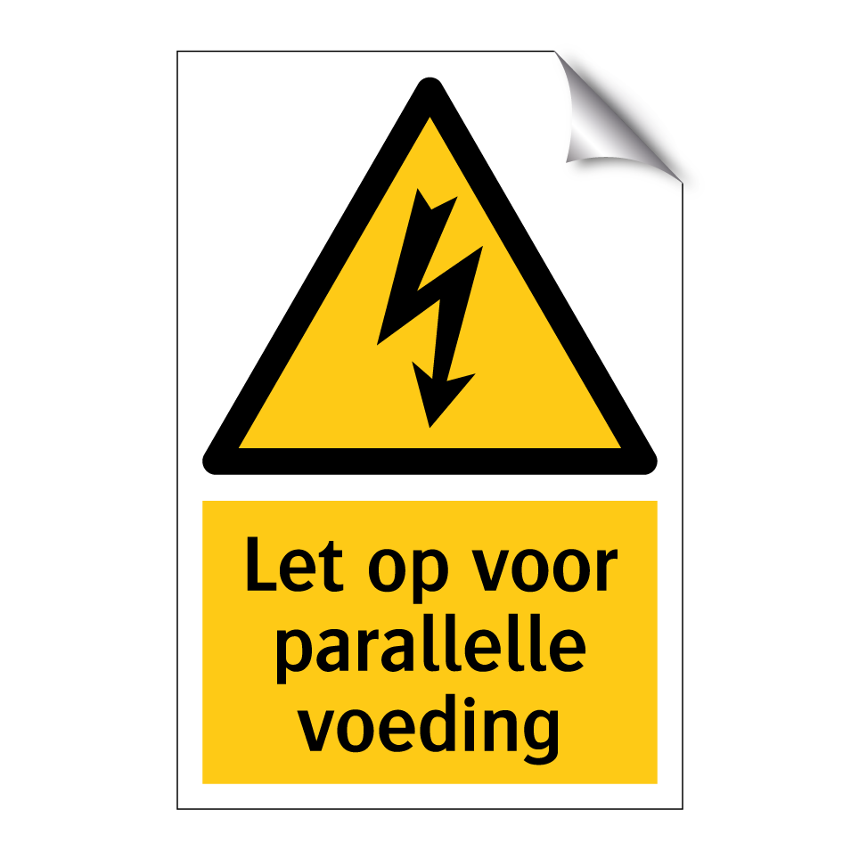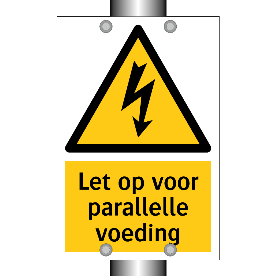 Waarschuwingsbord met de tekst Let op voor parallelle voeding