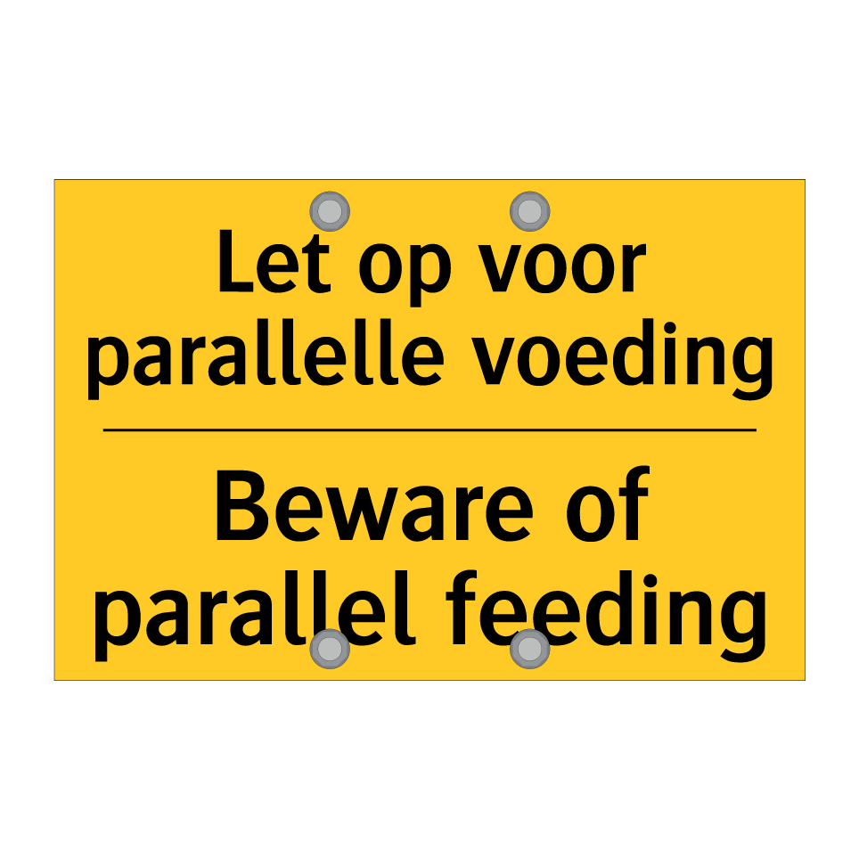 Waarschuwingsbord met de tekst Let op voor parallelle voeding / Beware of parallel feeding