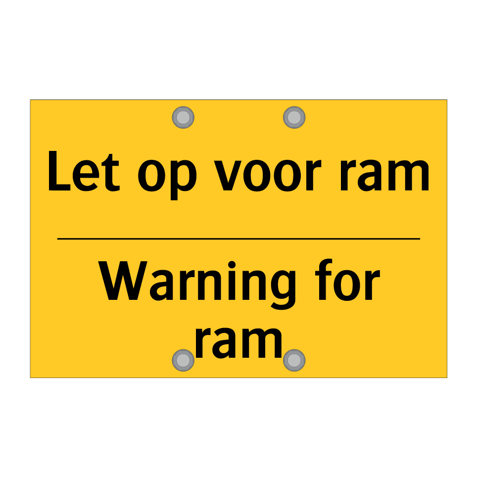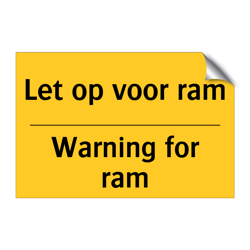 Waarschuwingsbord met de tekst Let op voor ram / Warning for ram