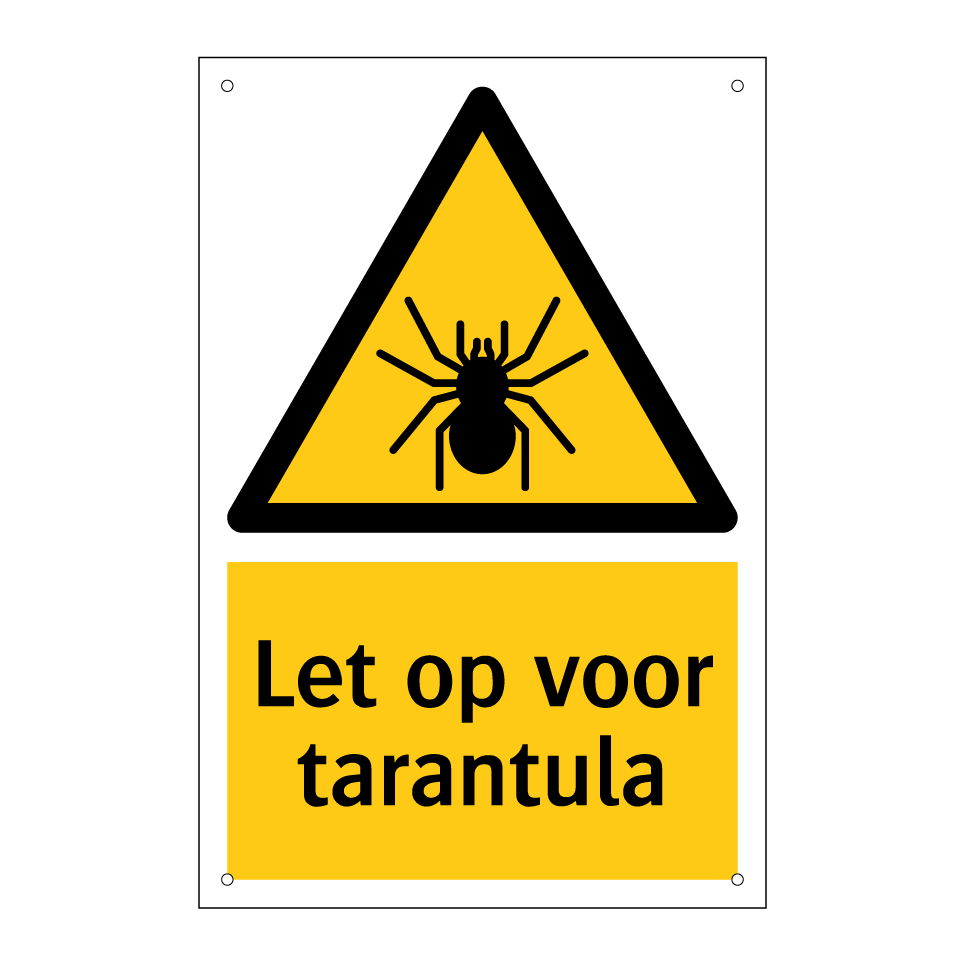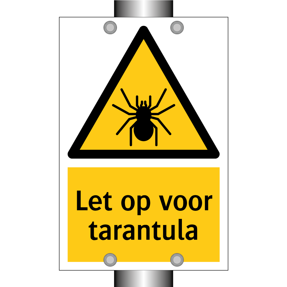 Waarschuwingsbord met de tekst Let op voor tarantula