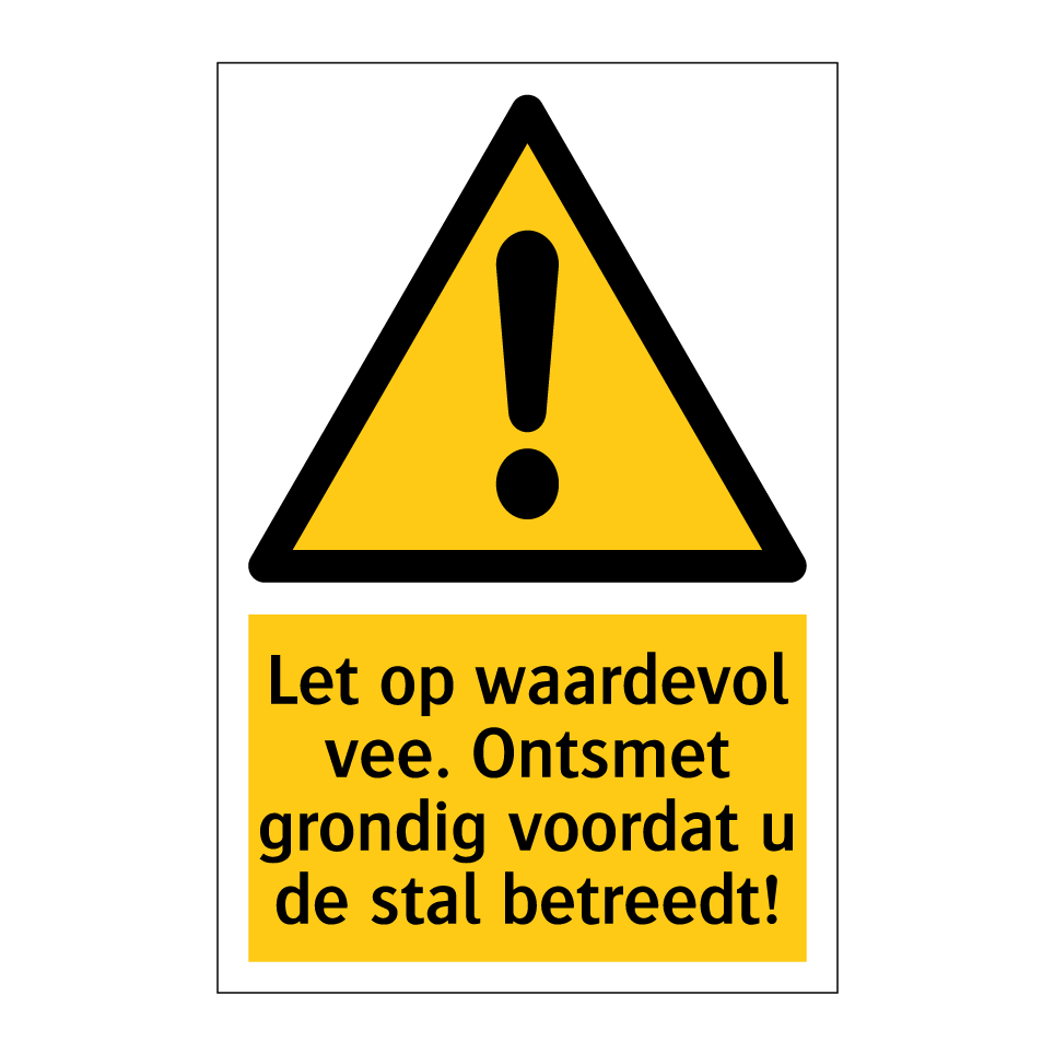 Let op waardevol vee. Ontsmet grondig voordat u de stal betreedt!
