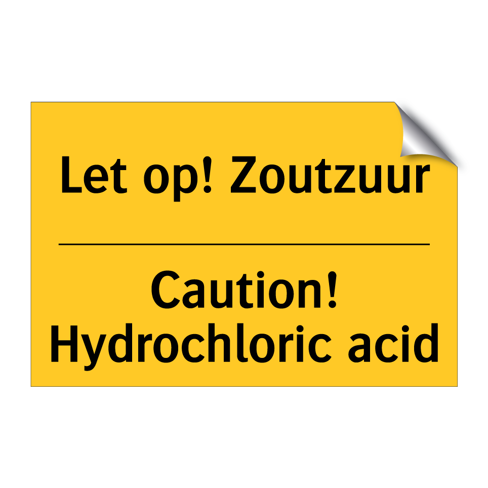 Waarschuwingsbord met de tekst Let op! Zoutzuur / Caution! Hydrochloric acid