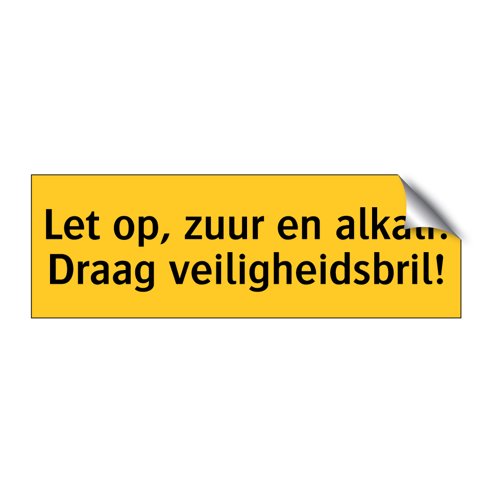 Waarschuwingsbord met de tekst Let op, zuur en alkali! Draag veiligheidsbril!