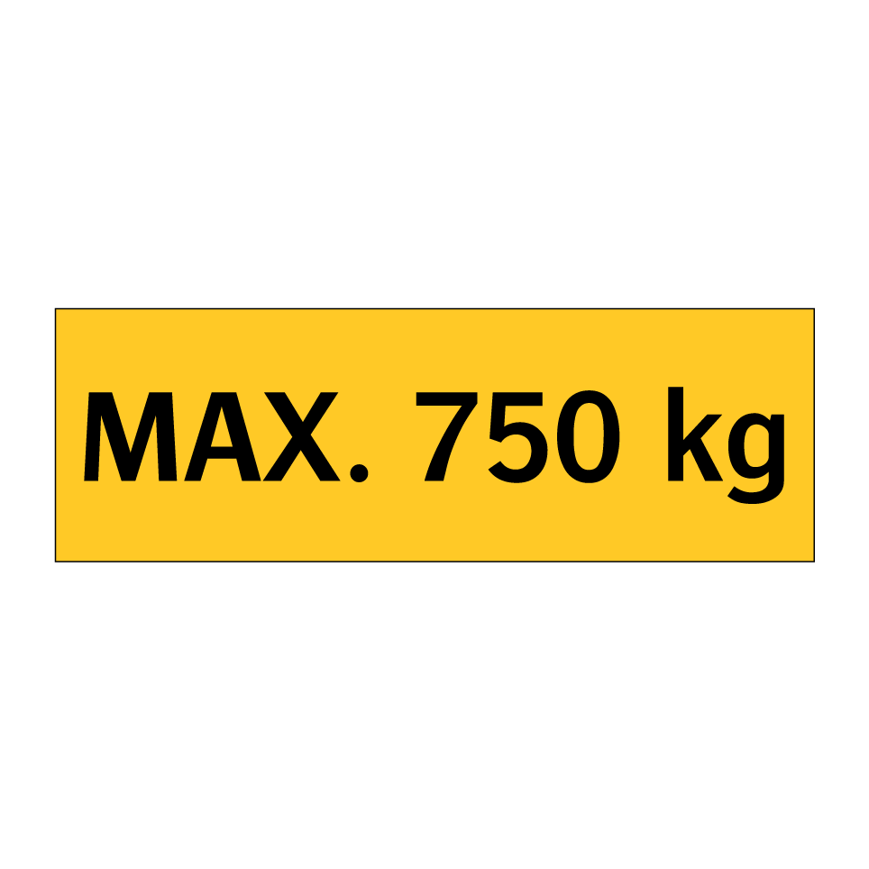Waarschuwingsbord met de tekst MAX. 750 kg