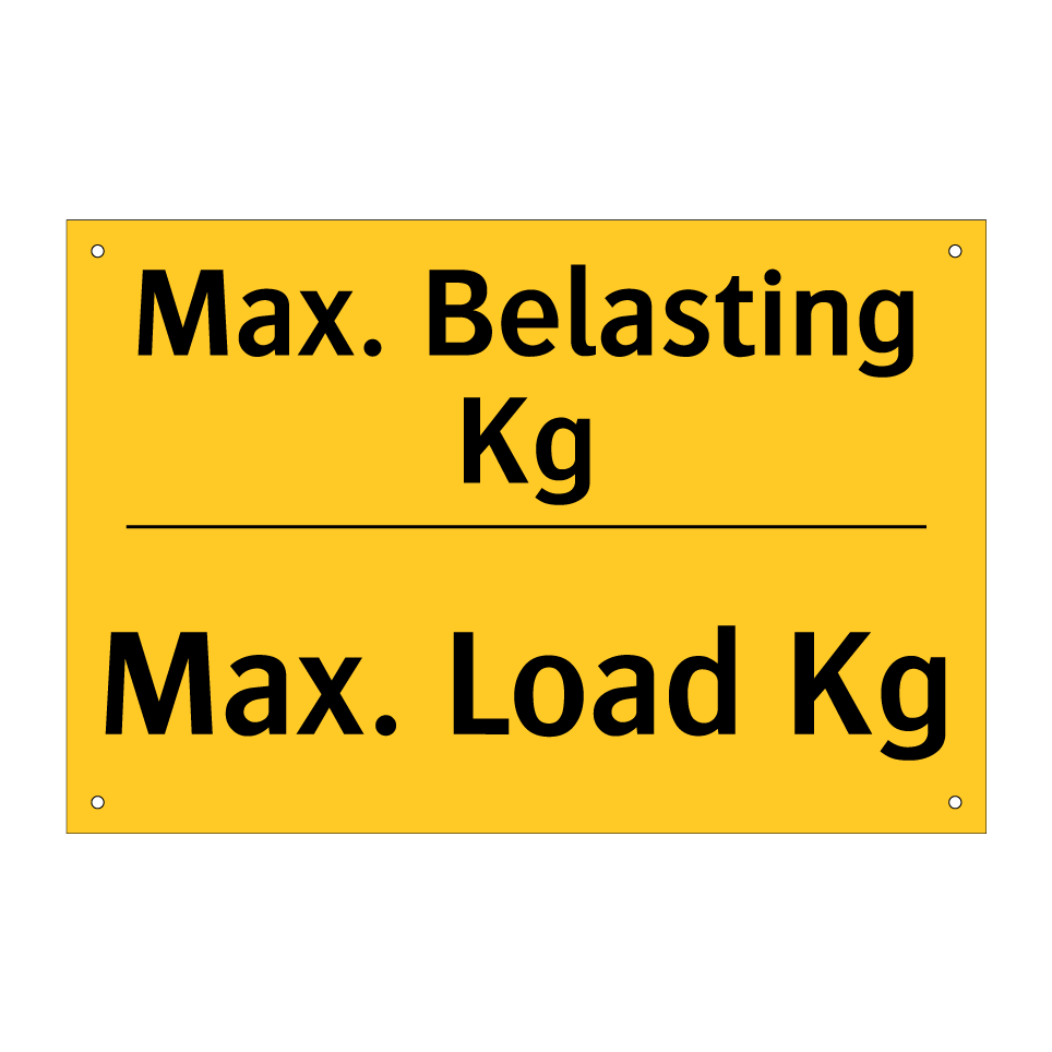 Waarschuwingsbord met de tekst Max. Belasting Kg / Max. Load Kg
