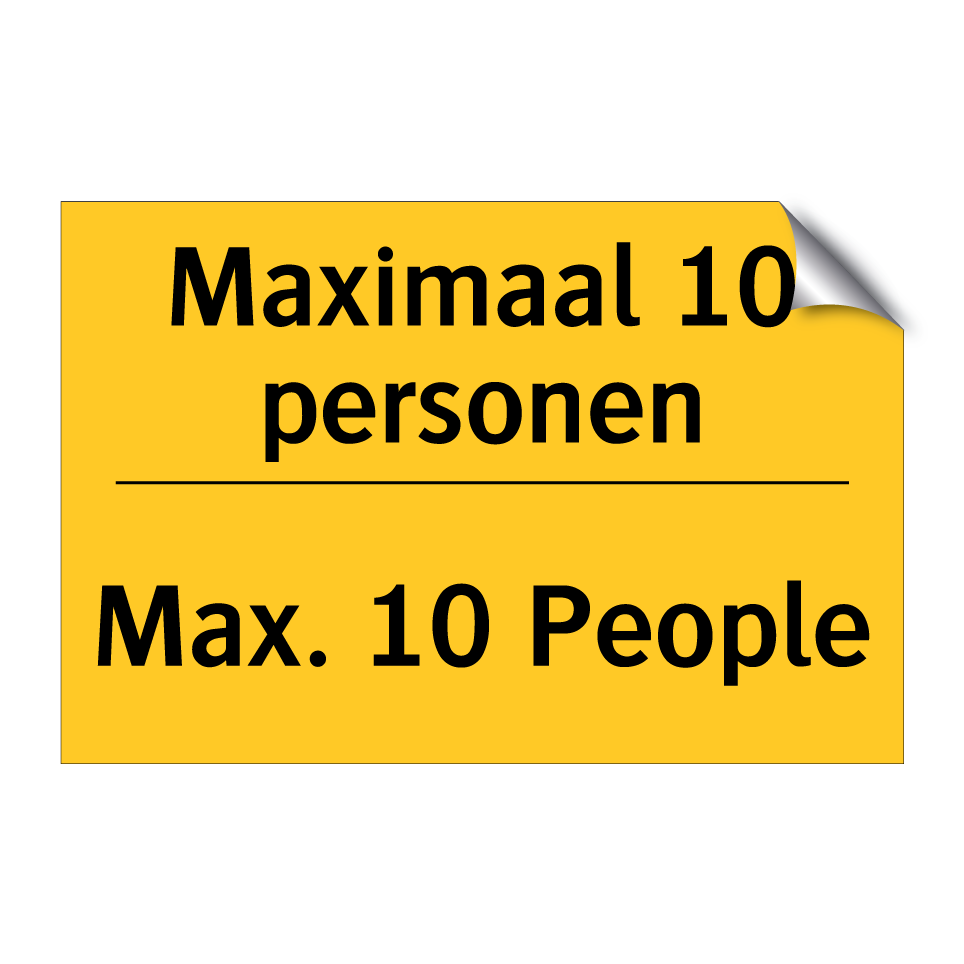Waarschuwingsbord met de tekst Maximaal 10 personen / Max. 10 People