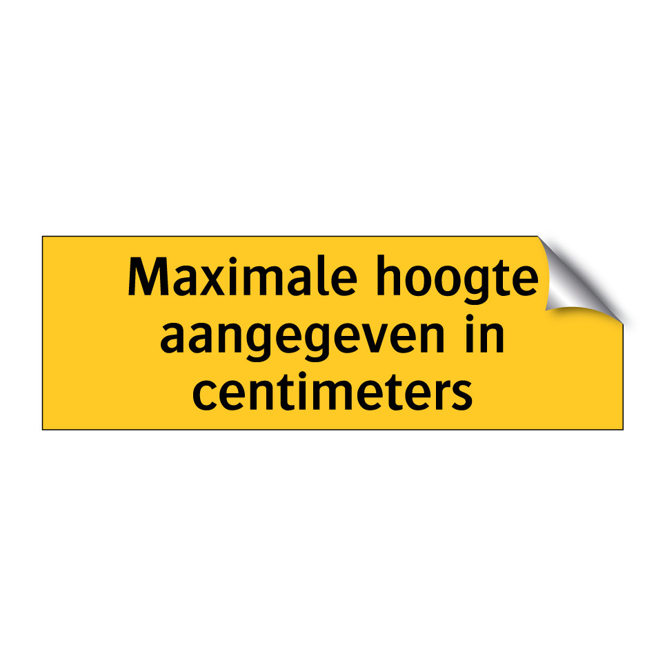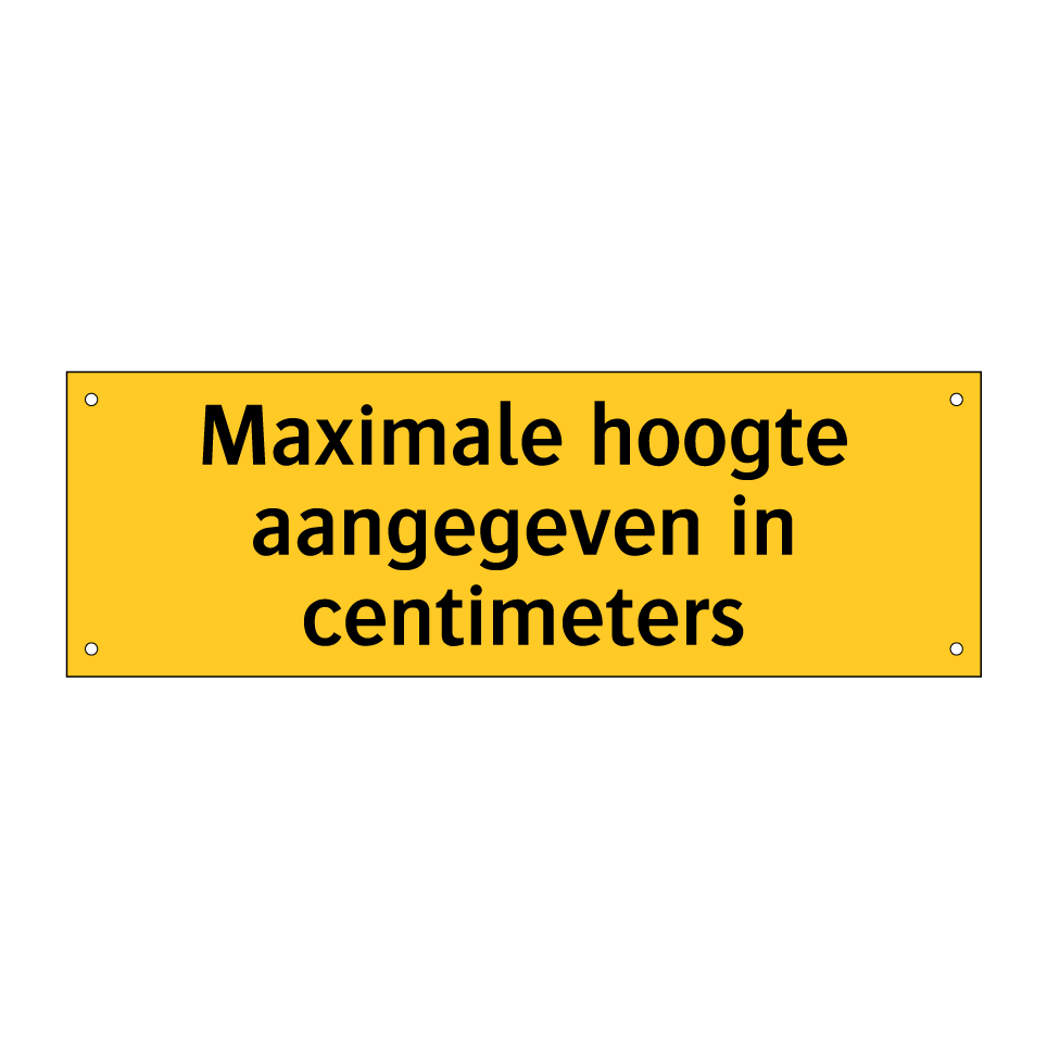 Waarschuwingsbord met de tekst Maximale hoogte aangegeven in centimeters