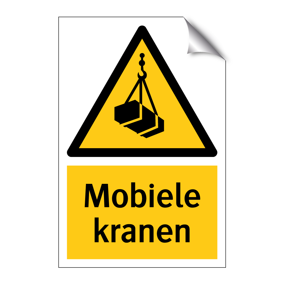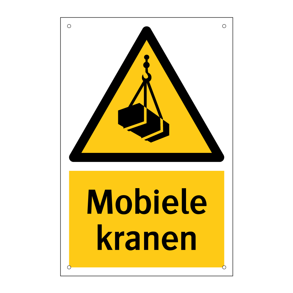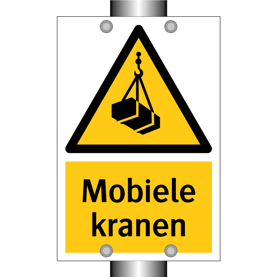 Waarschuwingsbord met de tekst Mobiele kranen