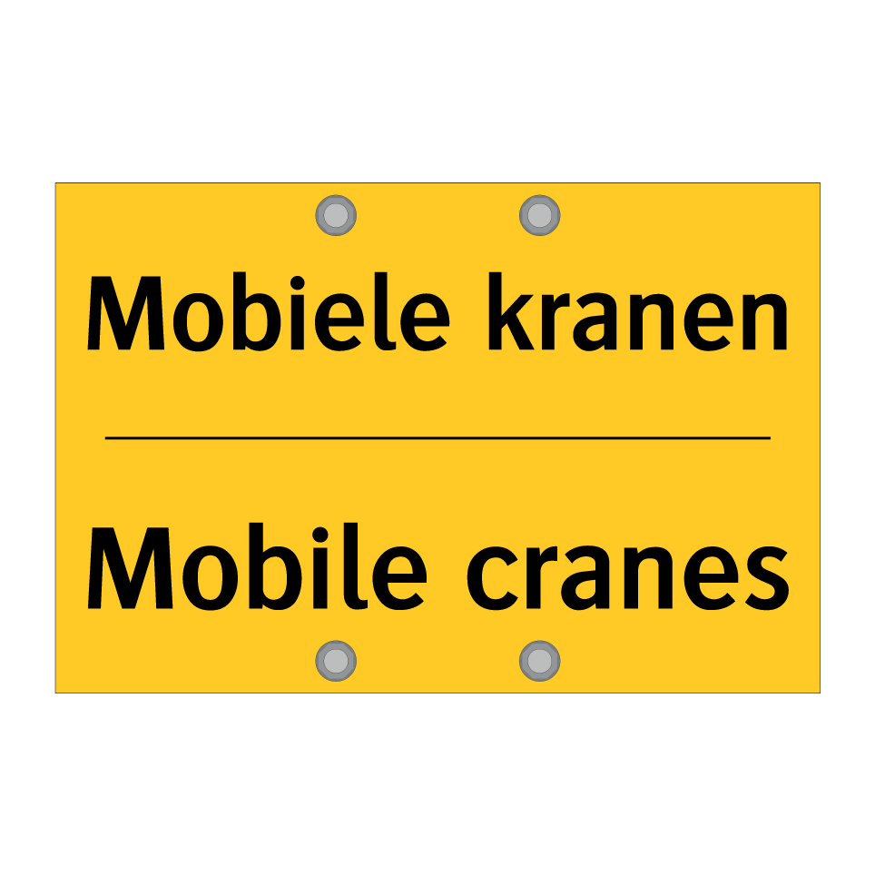 Waarschuwingsbord met de tekst Mobiele kranen / Mobile cranes