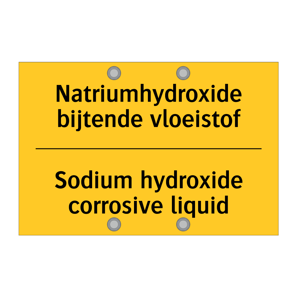 Waarschuwingsbord met de tekst Natriumhydroxide bijtende vloeistof / Sodium hydroxide corrosive liquid
