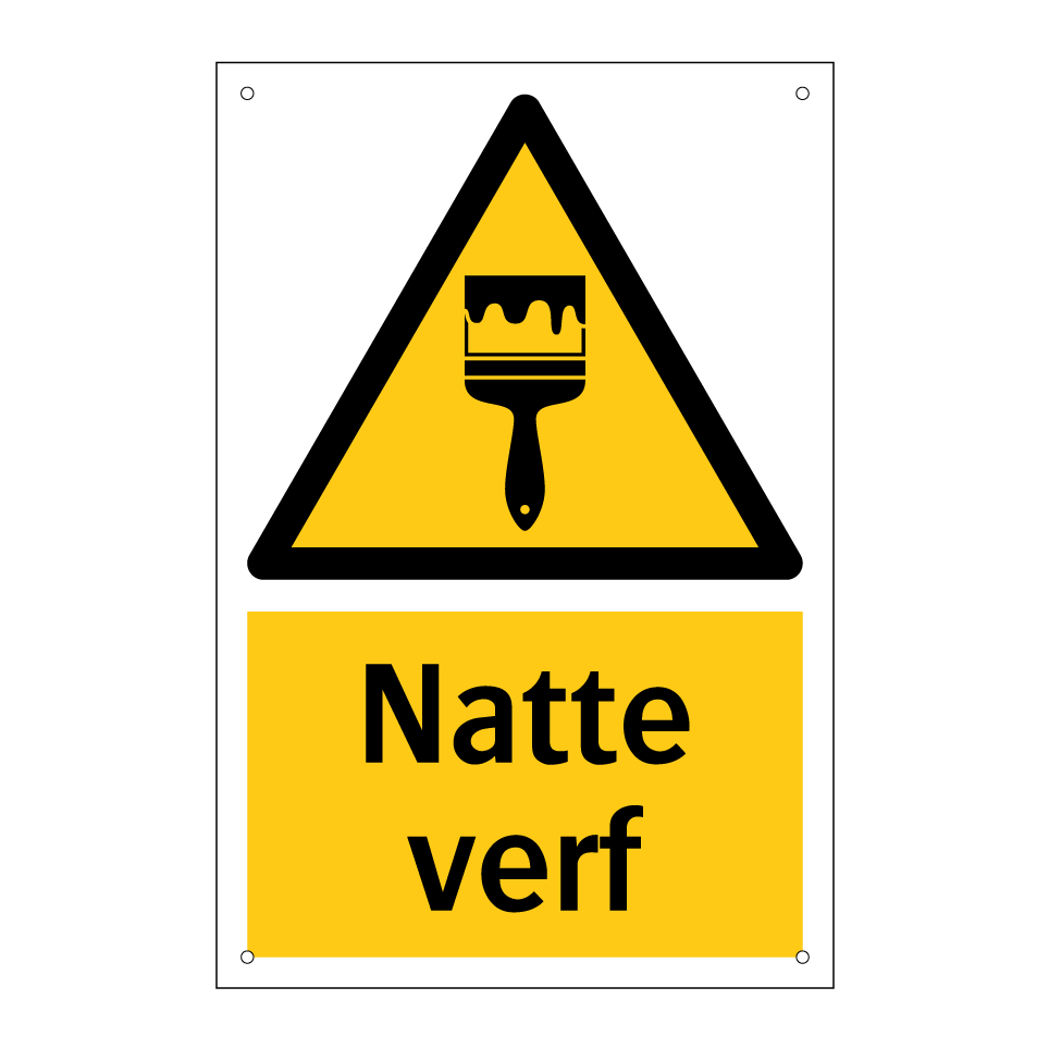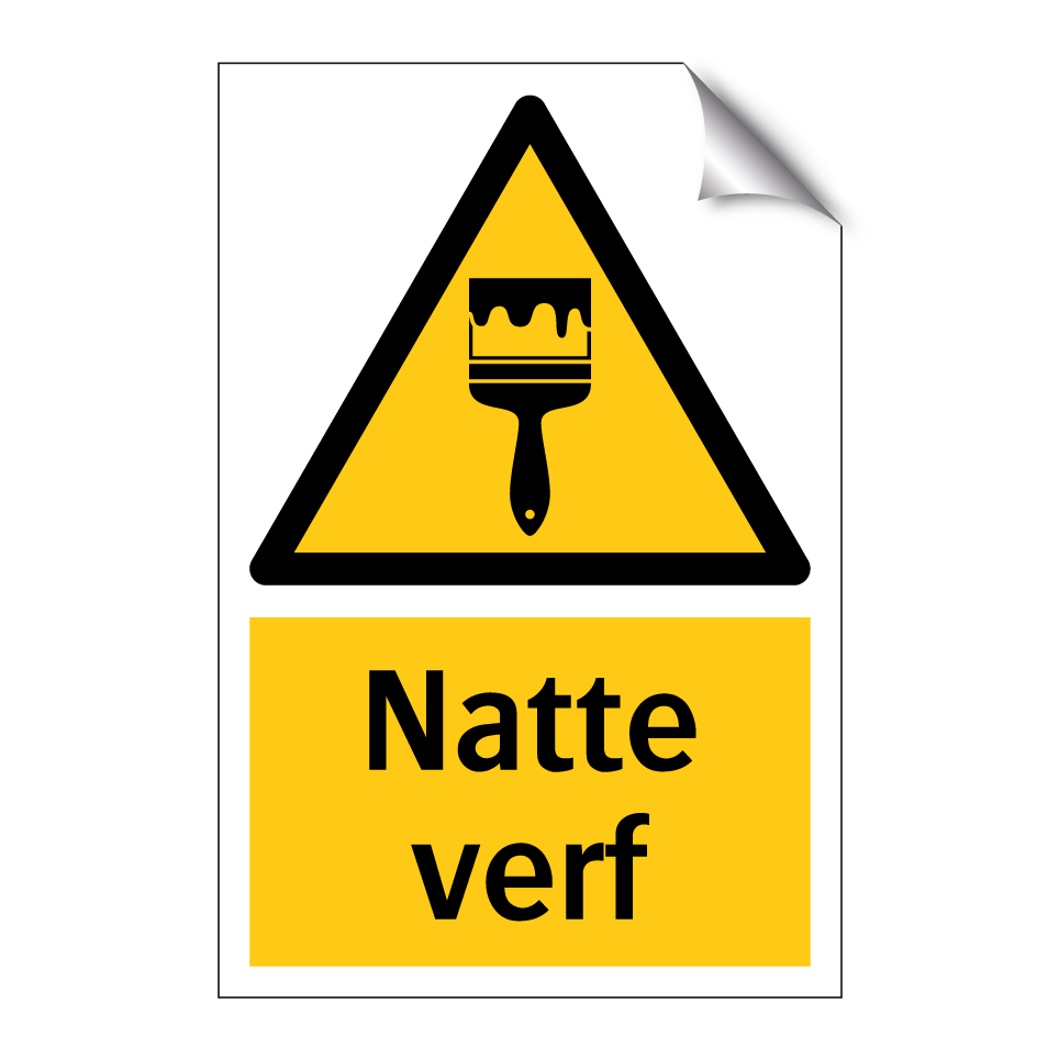 Waarschuwingsbord met de tekst Natte verf